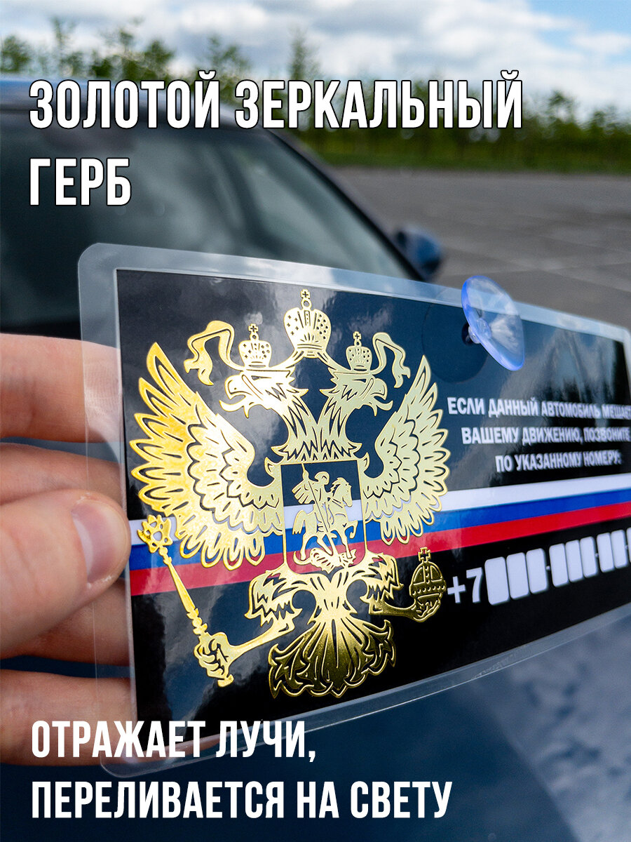 Автовизитка с номером телефона / парковочная табличка для авто - с золотым гербом России