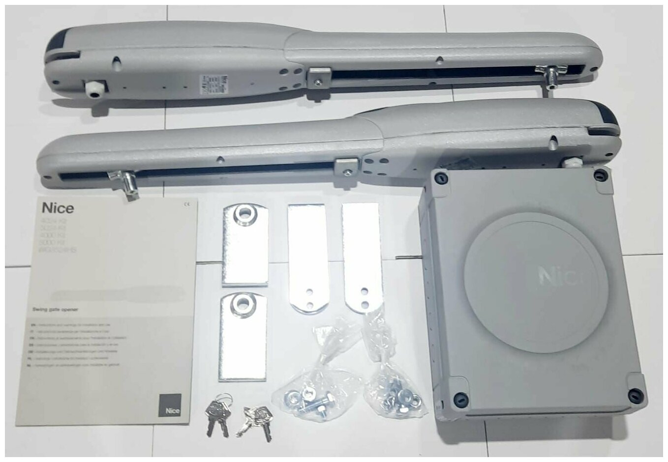 Купить Автоматика для распашных ворот NICE WINGO4BDKCE (2 привода, приемник, 2 пульта, блок управления, фотоэлементы, лампа)