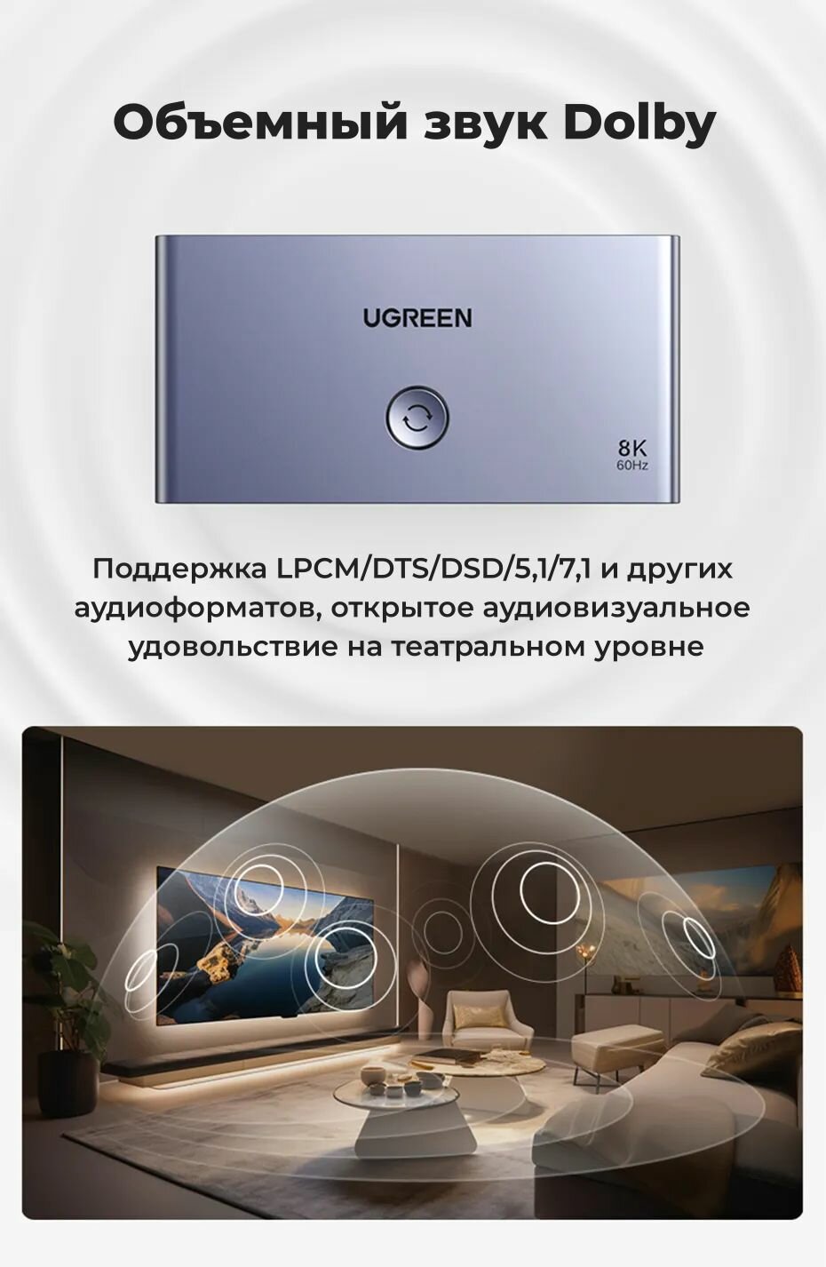 Переключатель HDMI 2.1 на 3 входа и 1 выход / UGREEN 8K@60Hz Switch / HDMI разветвитель интересное: