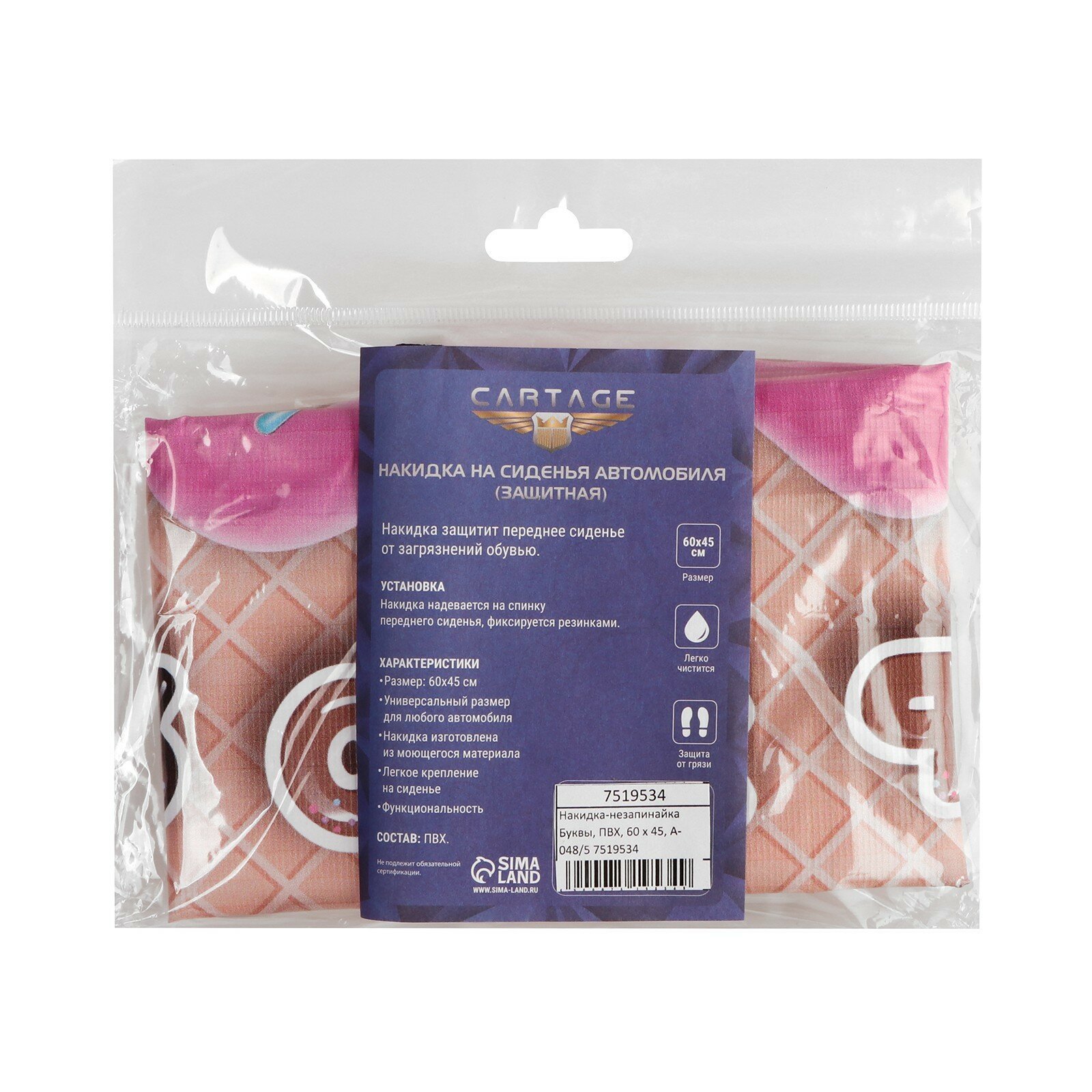 Накидка на сиденье автомобильное Cartage Буквы, ПВХ, 60 х 45 см, европодвес (1шт.) интересное: