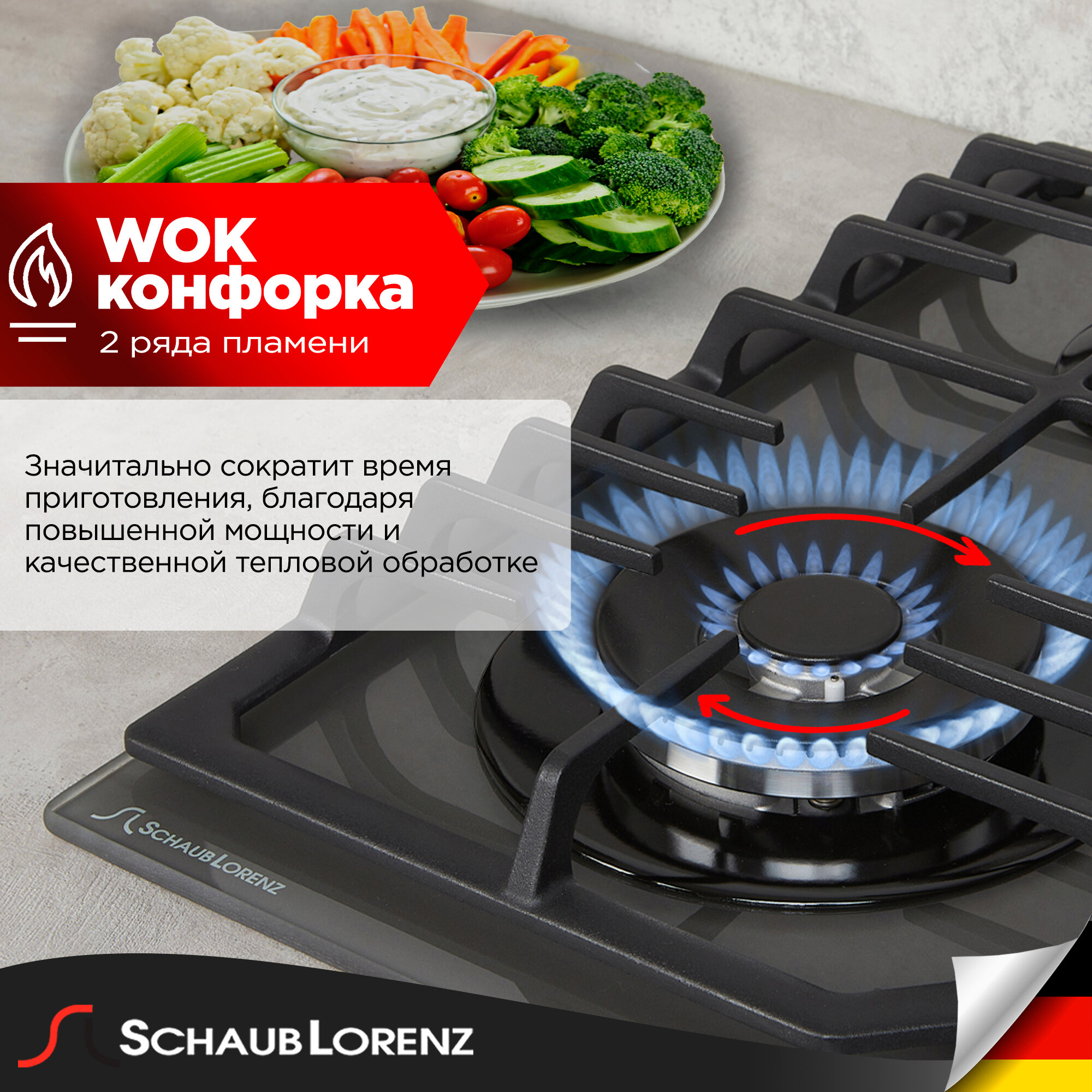 Газовая встраиваемая варочная панель Schaub Lorenz SLK GG6018, 60 см, серебристый, газ-контроль, электроподжиг, WOK