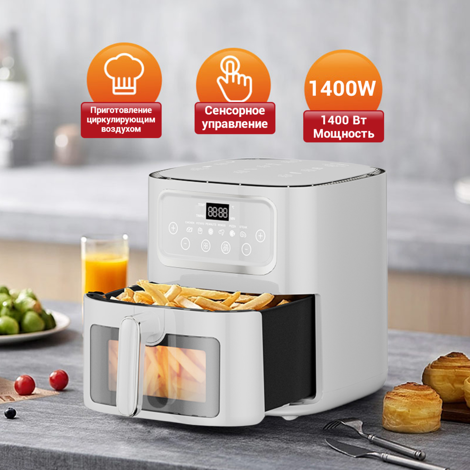 Купить Аэрогриль электрический KaringBee SZ-A805 белый/Сенсорное управление/объем 10 л/8 программ приготовления/6 в 1 Аэрофритюрница электрическая для кухни 1400 Вт