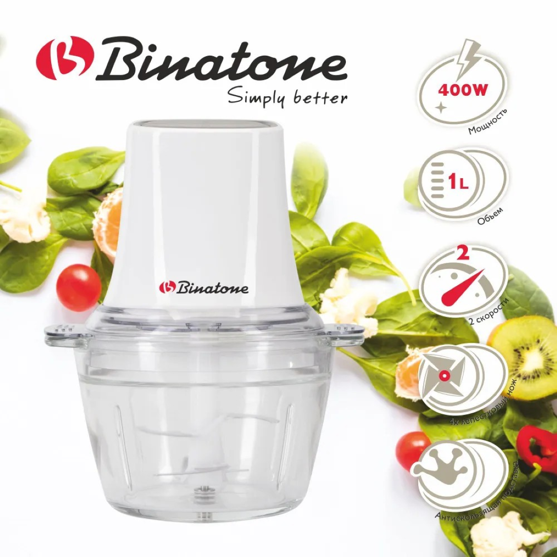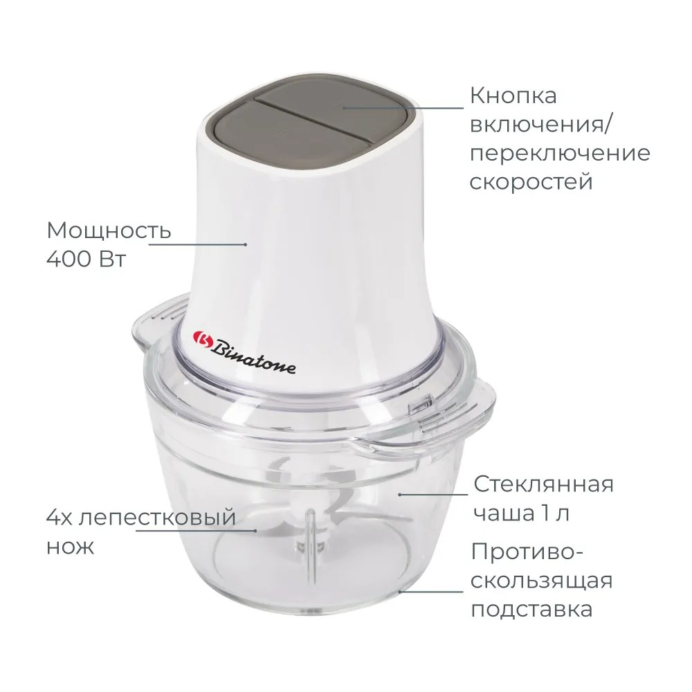 Купить Измельчитель для кухни Binatone, модель MFP 414, 400 Вт, объем 1 л, цвет белый
