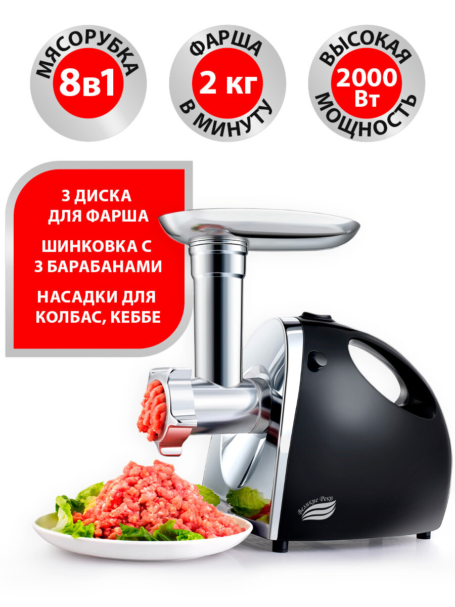 Мясорубка Великие Реки Ангара-1, 2000 Вт, шинковка, соковыжималка, до 2 кг/мин .