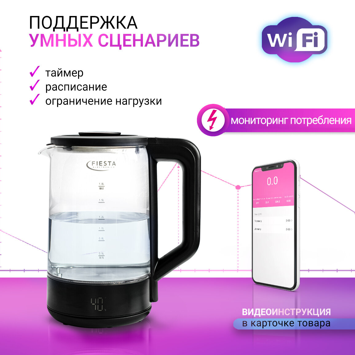 Умный электрический чайник Fiesta DK-2 WI-FI
