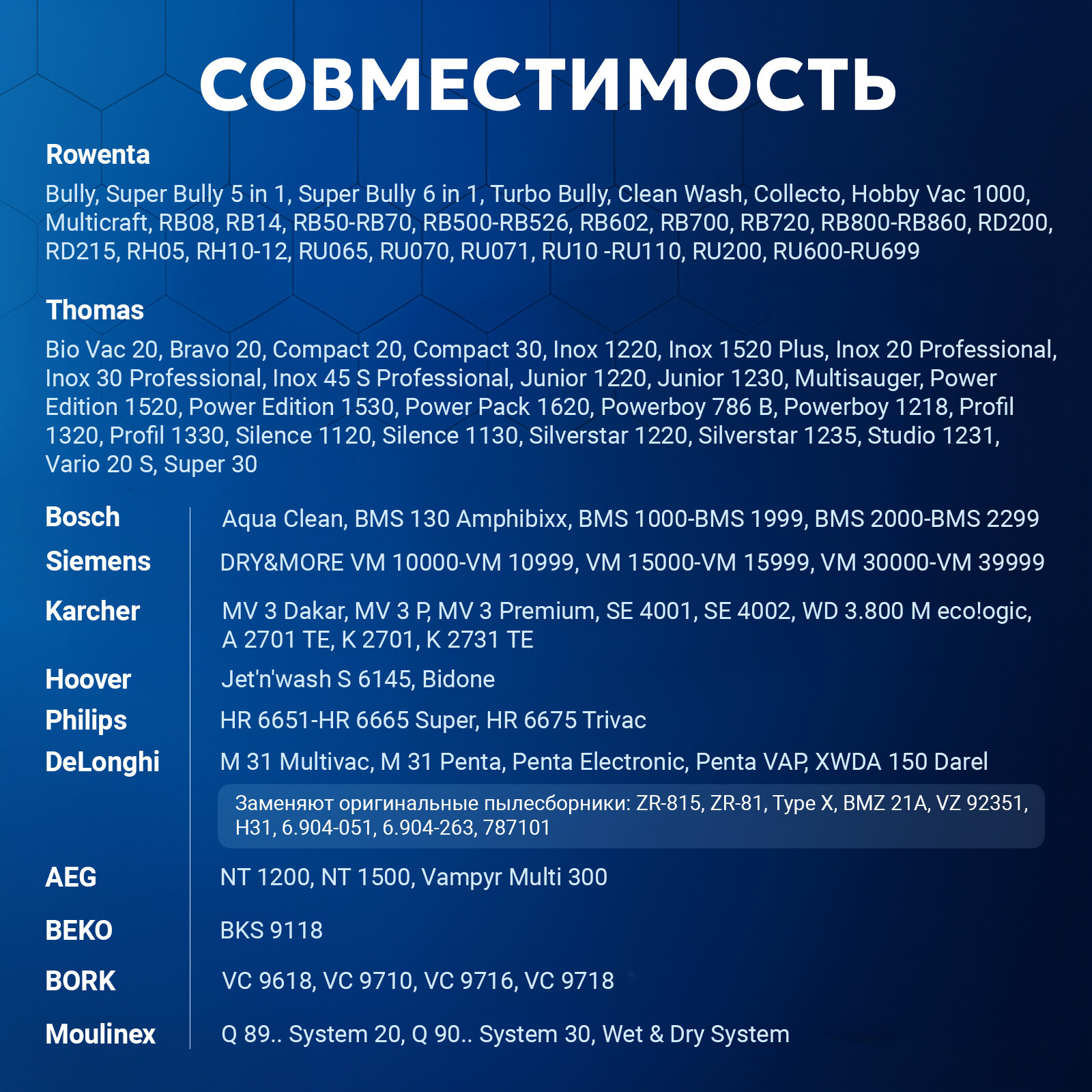 Мешки для пылесоса керхер Karcher, Rowenta, Hoover, Siemens, Bosch, AEG, De Longhi