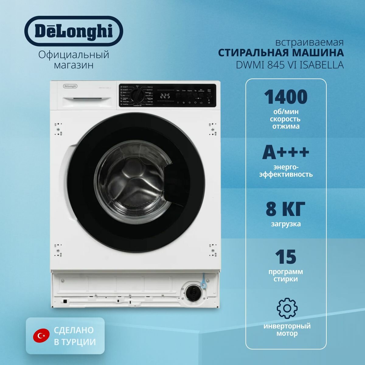 СохранитьВстраиваемая стиральная машина автомат 54 см DeLonghi DWMI 845 VI ISABELLA, 8 кг, инверторный мотор, легкое глаженье, стиральная машинка с выбором скорости отжима и температуры стирки, машинка стиральная автомат интересное: