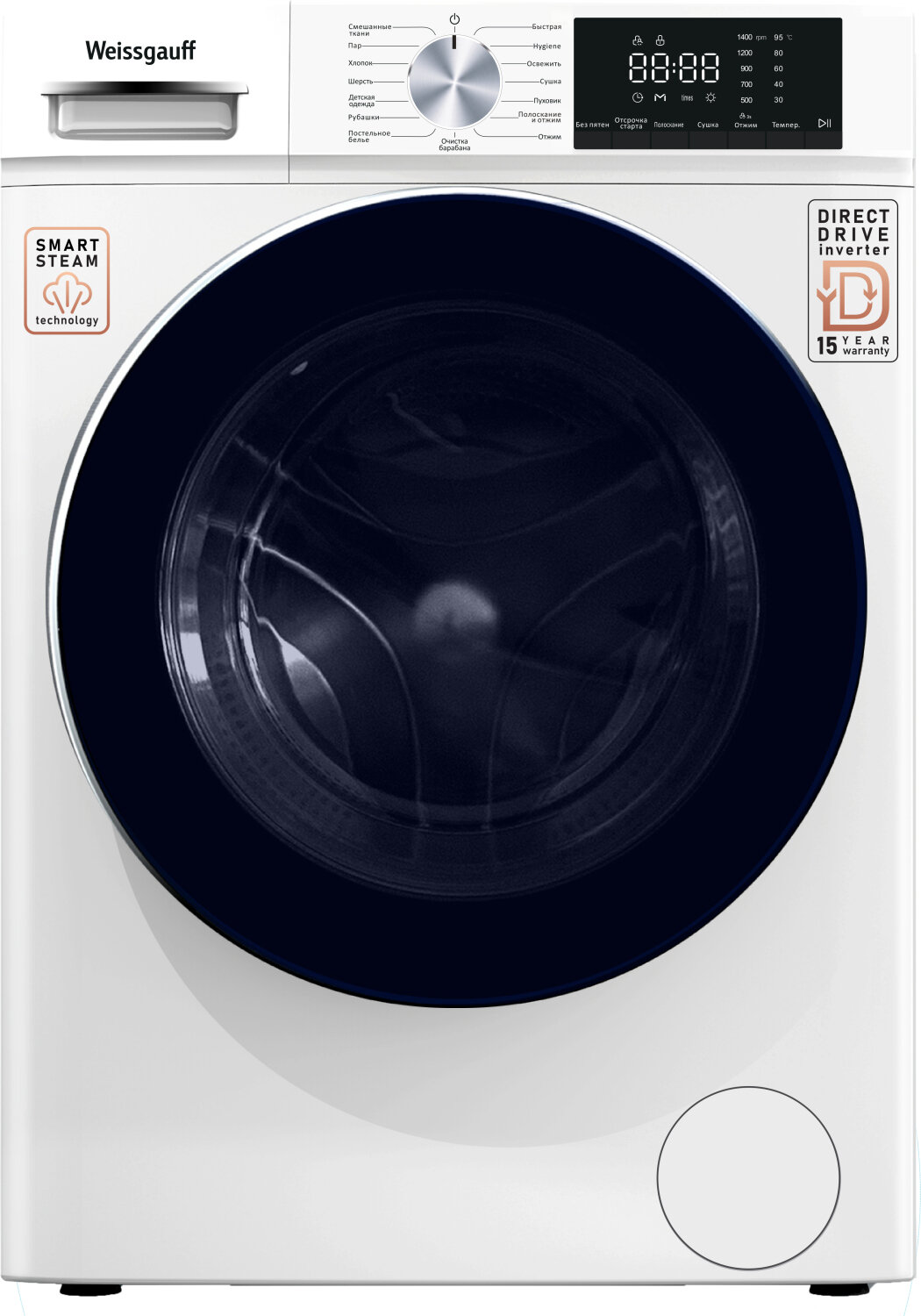 Cтиральная машина с сушкой, прямым приводом Weissgauff WMD 58411 Direct Drive Steam интересное: