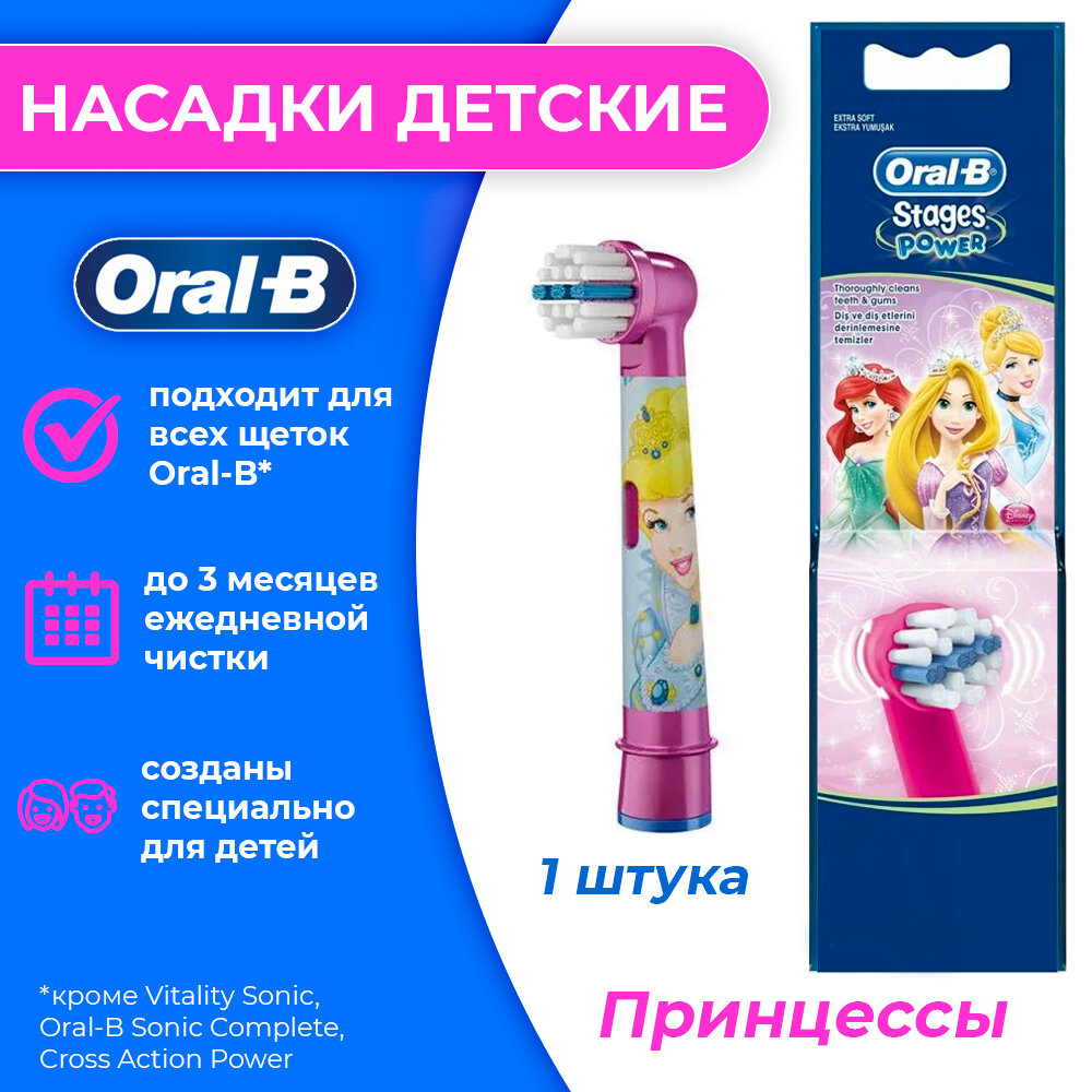 Купить 1 детская насадка Oral-B Принцессы Диснея Stages Kids для электрической щетки, розовый