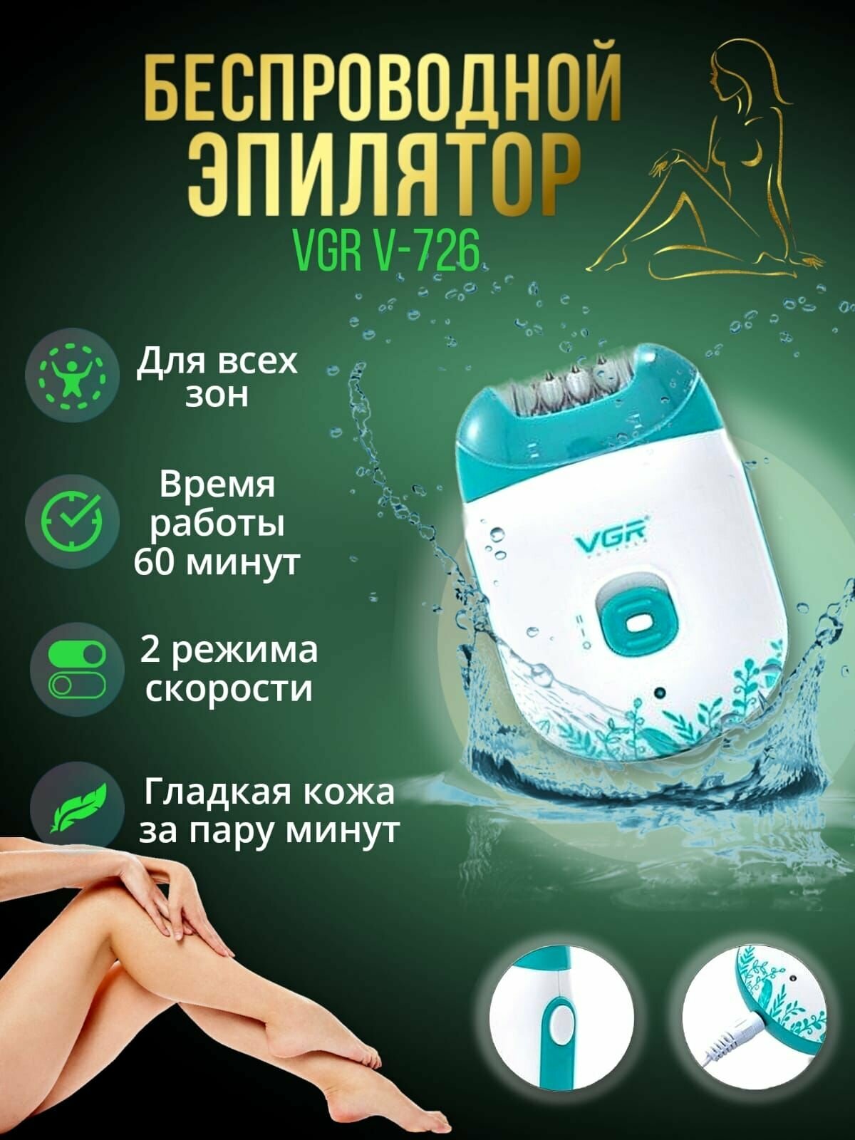Беспроводной Эпилятор VGR-726 / Эпилятор для бикини