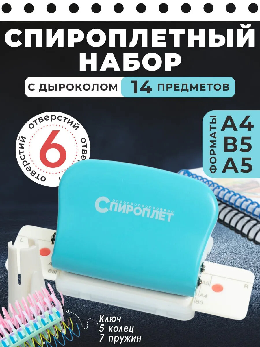 Дырокол на 6 отверстий. Спироплетный набор из 14 предметов. интересное: