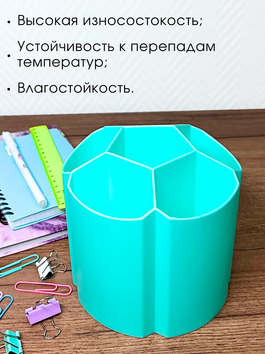 Органайзер для хранения канцелярии подставка для карандашей и ручек, 4 отделения, мятный