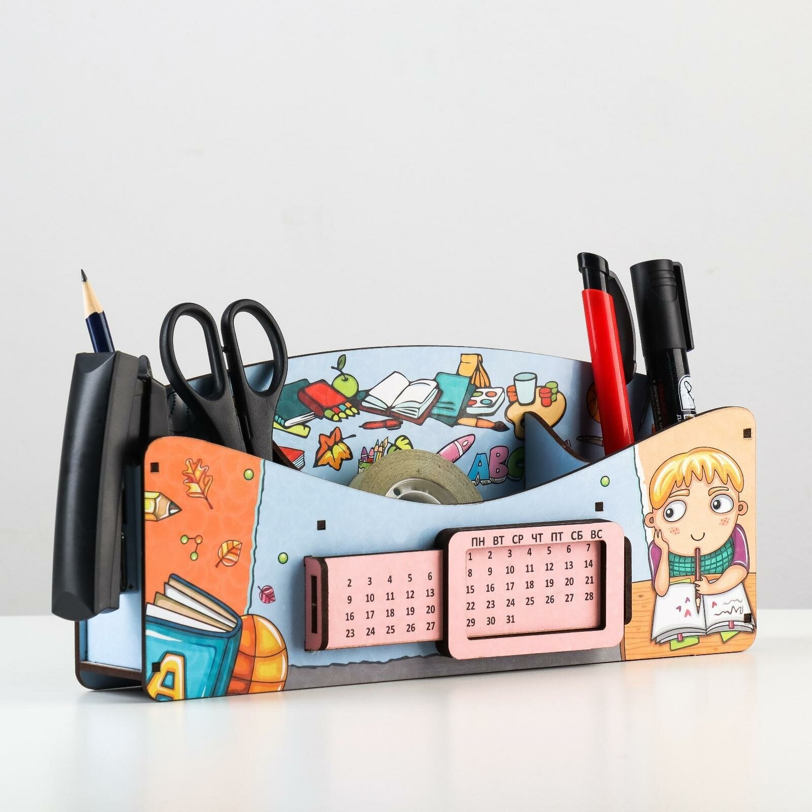 СохранитьОрганайзер для канцелярских предметов "Школа удобств", вечный календарь, цветной, голубой интересное: