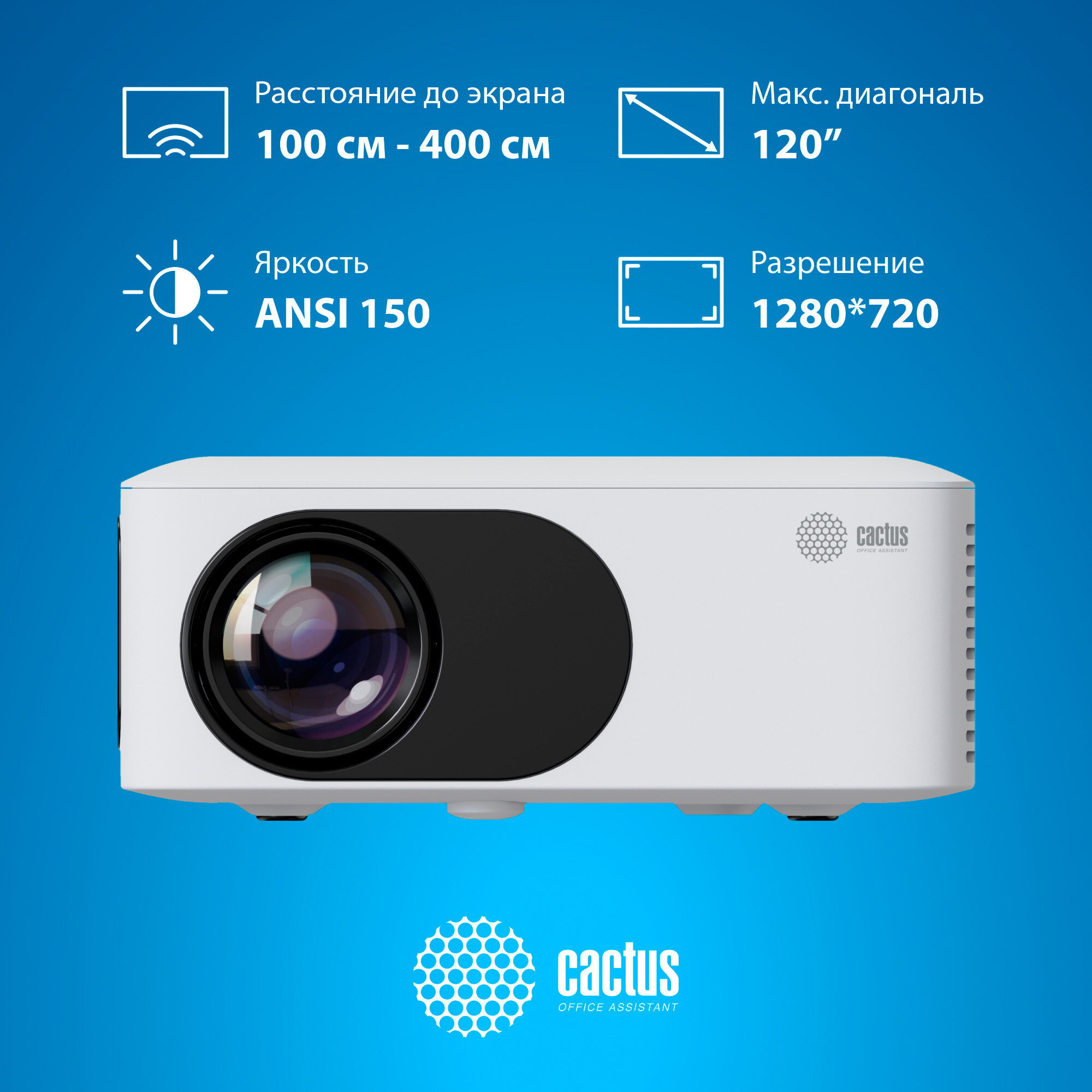Проектор Cactus Cs-pre.08wt.wxga LCD 1500Lm LS 150Lm Ansi (1280x720) 1000:1 ресурс лампы:30000часов
