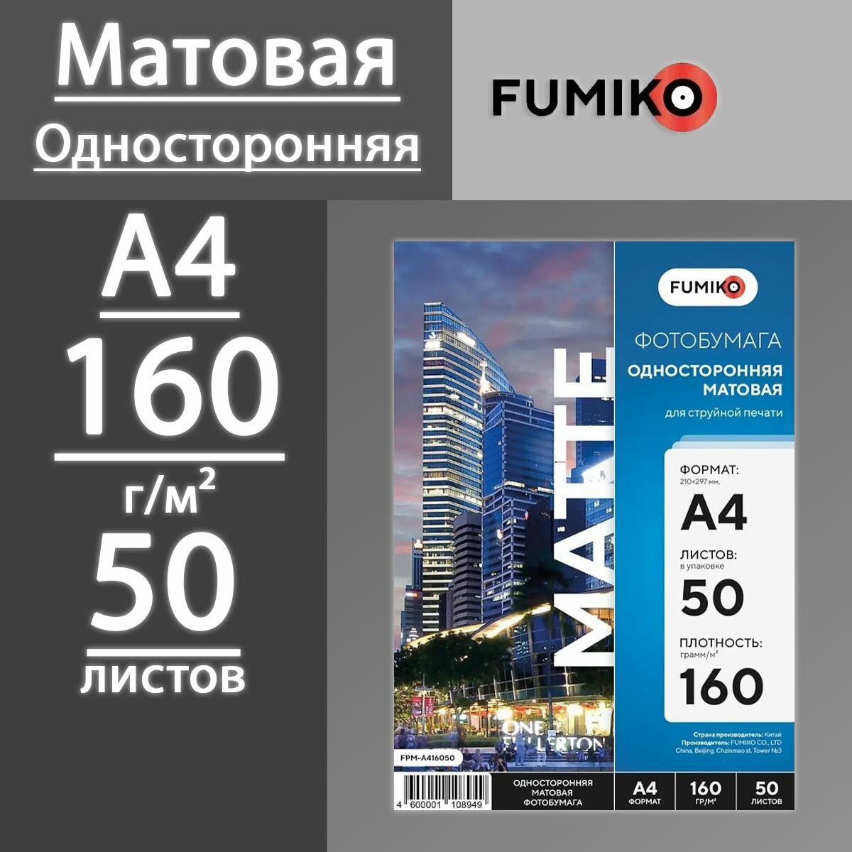 Фотобумага FUMIKO матовая односторонняя 160 г, А4, 50 листов интересное:
