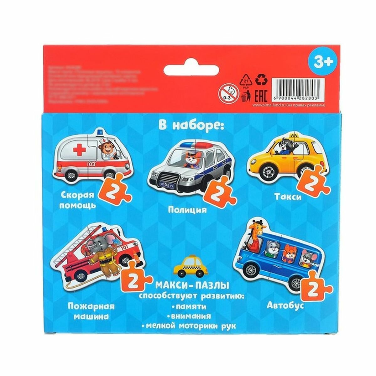 Макси-пазлы "Весёлый транспорт", 5 пазлов, 10 деталей, Puzzle Time