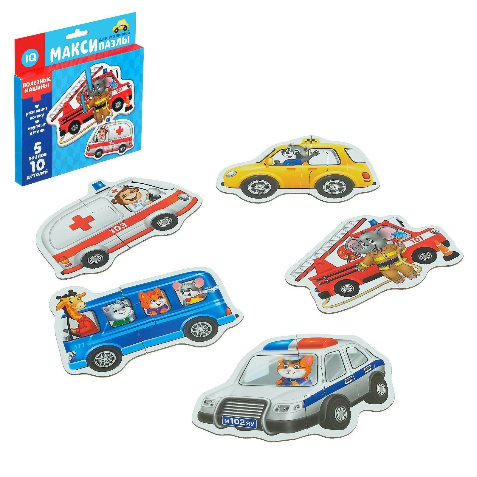 Купить Макси пазлы "Полезные машины", 5 пазлов, 10 деталей, Puzzle Time