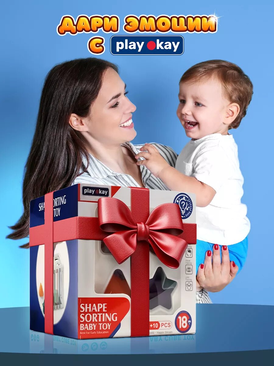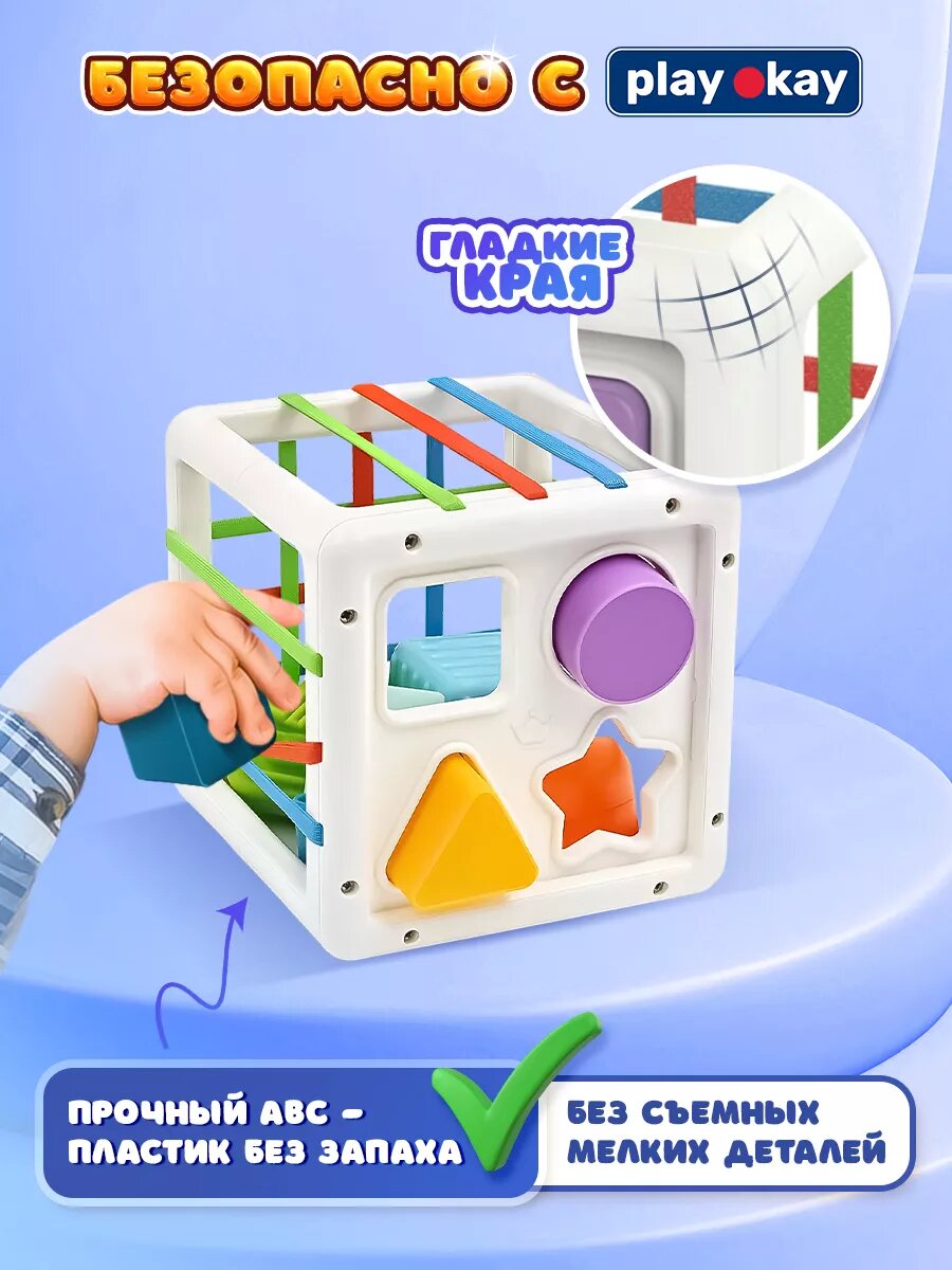 Сортер для малышей Play Okay геометрический куб головоломка, монтессори, раскладывается в доску, интеллектуальное развитие и положительные эмоции