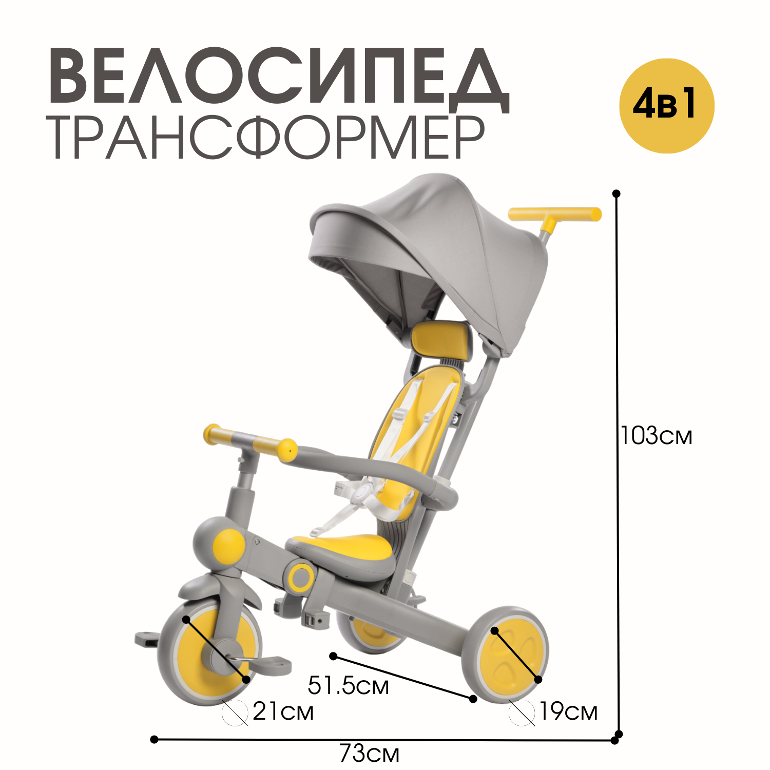 | Комплектация | велосипед, педали, бампер, родительская ручка, капюшон |