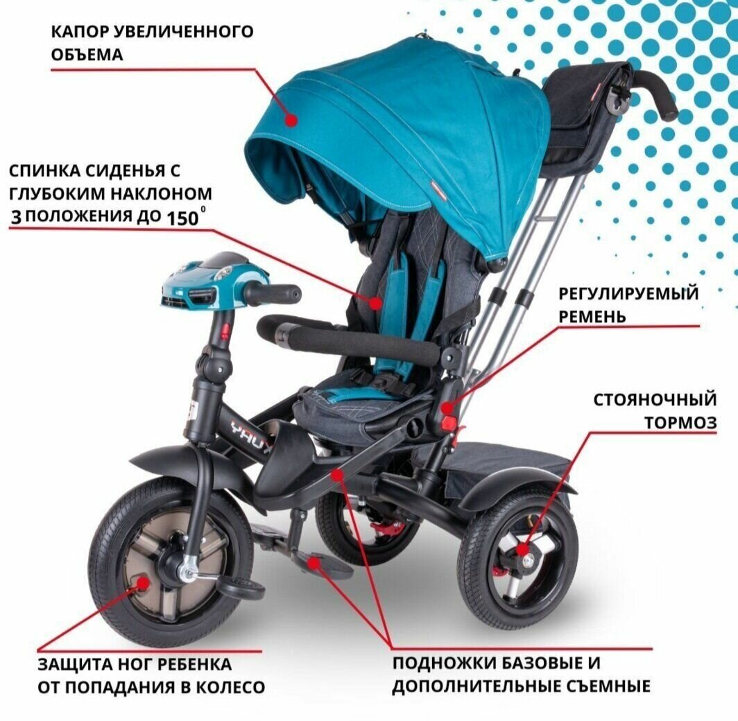 Детский трехколесный велосипед с ручкой Tech Team Luxury изумрудный интересное: