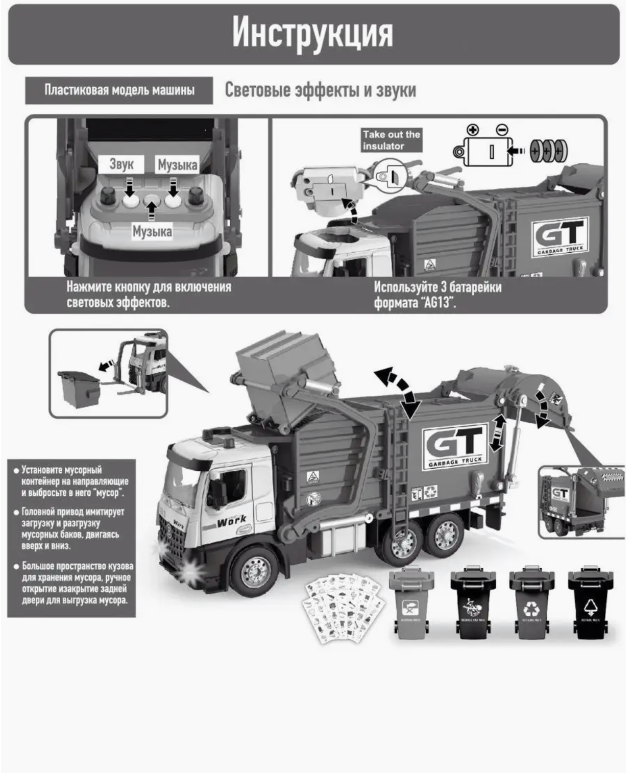 Машина мусоровоз со звуком и светом от Mari Toys интересное: