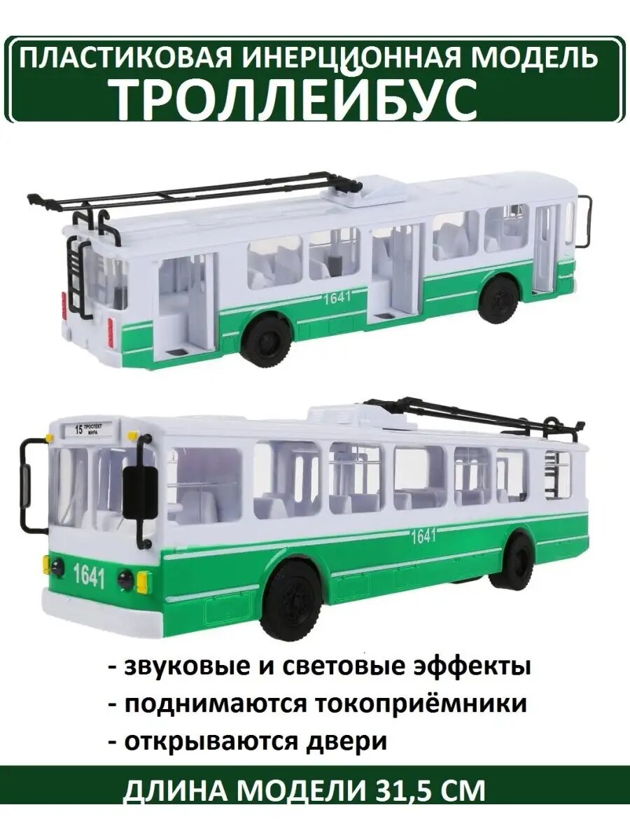 Троллейбус 31,5см, инерционный, Технопарк SВ-14-02-GN-ОВ