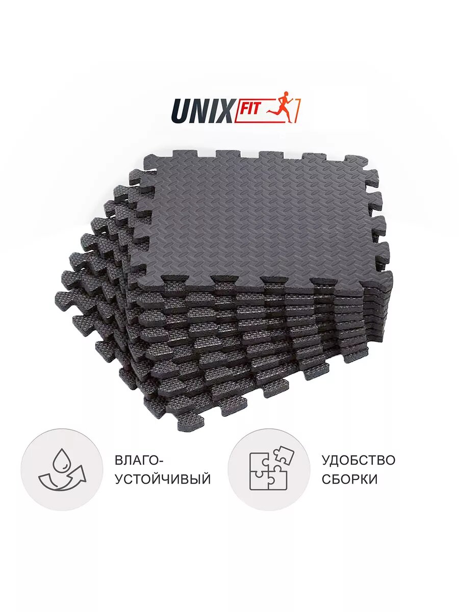 Купить Коврик-пазл UNIX Fit влагостойкий, большие мягкие модули спортивные, детский коврик, 30 х 30 х 1 см, серый, 24 шт. UNIXFIT