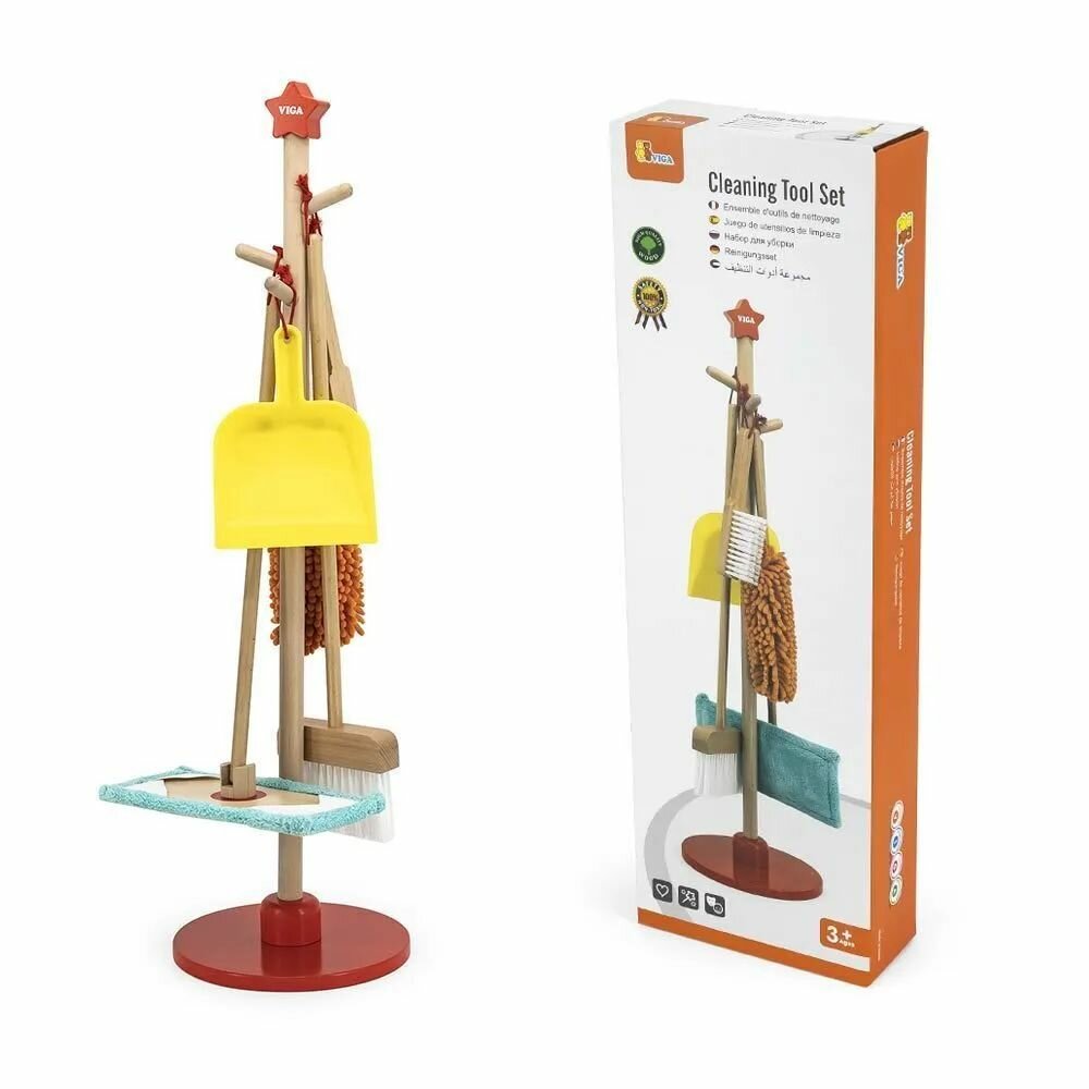 Детский игровой набор для уборки VIGA хозяйка (5 предметов) на стойке вига 44567