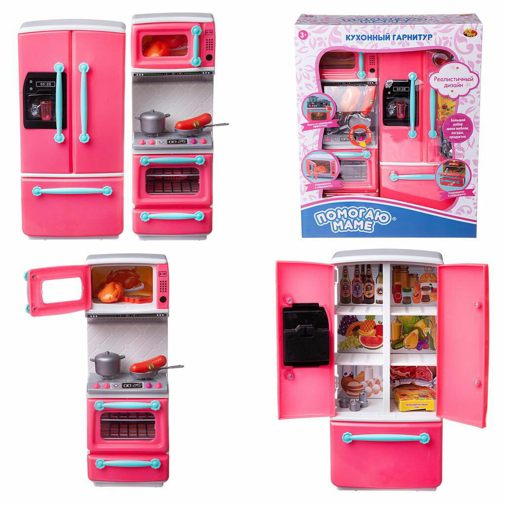 | В комплекте | вытяжка, духовой шкаф, игрушечная еда, кухонная утварь, микроволновая печь, плита, холодильник |