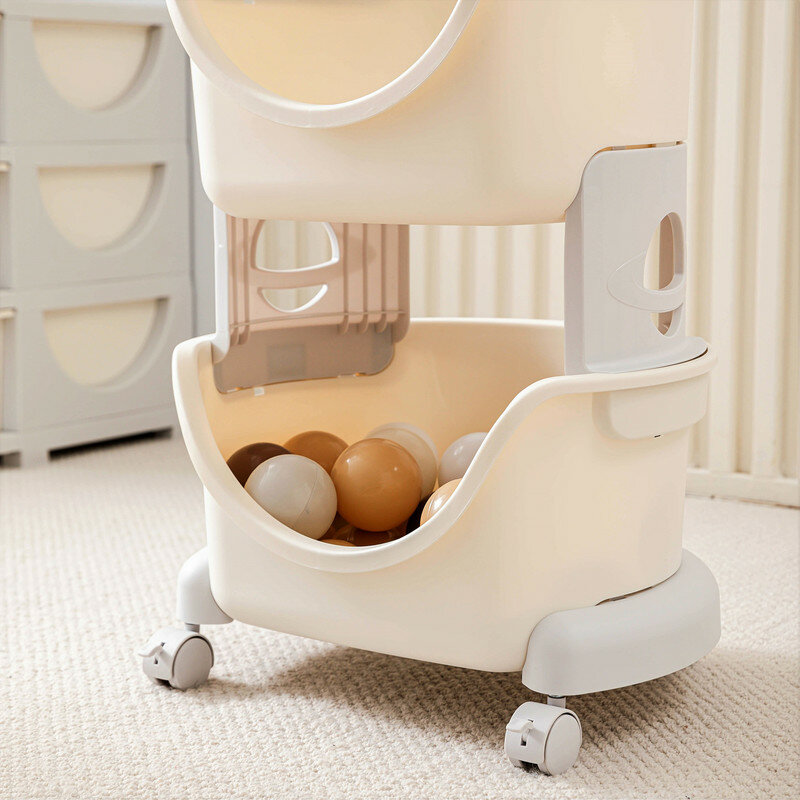 Стеллаж для игрушек UNIX Kids Moon 8 шкаф в детскую для хранения / с тележкой _ 3 полки + 5 ящиков