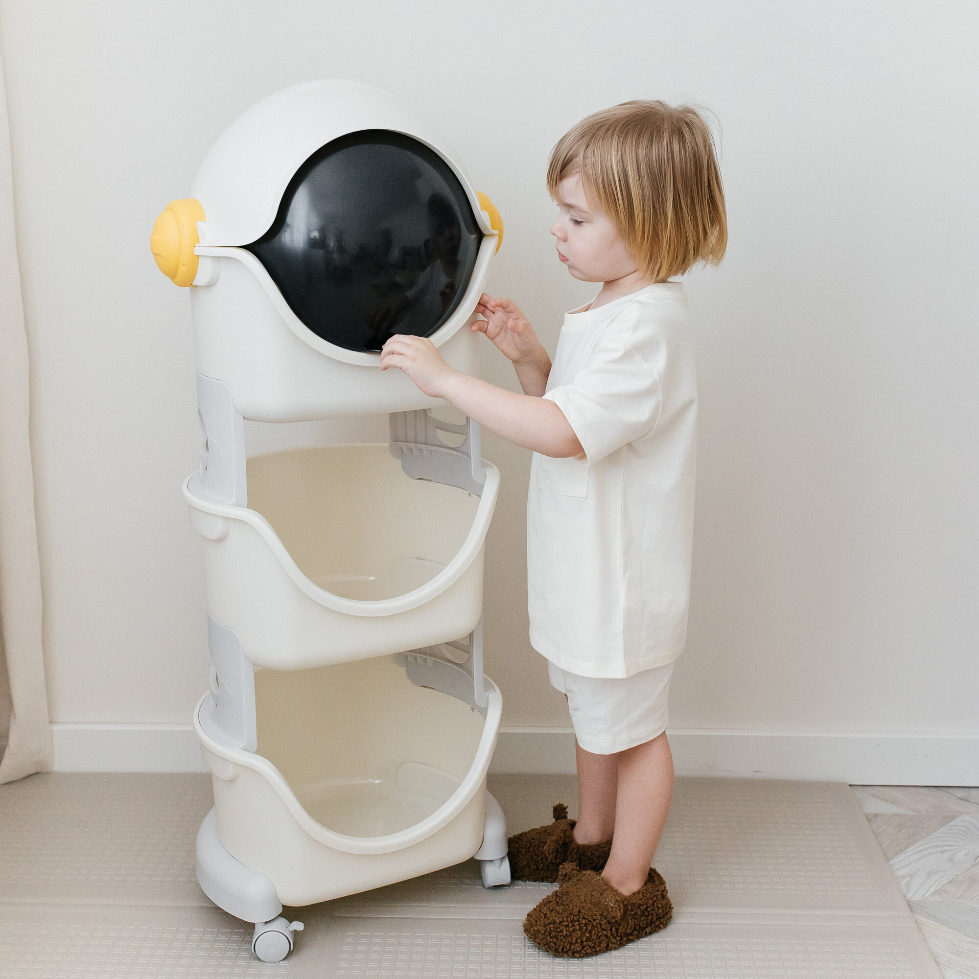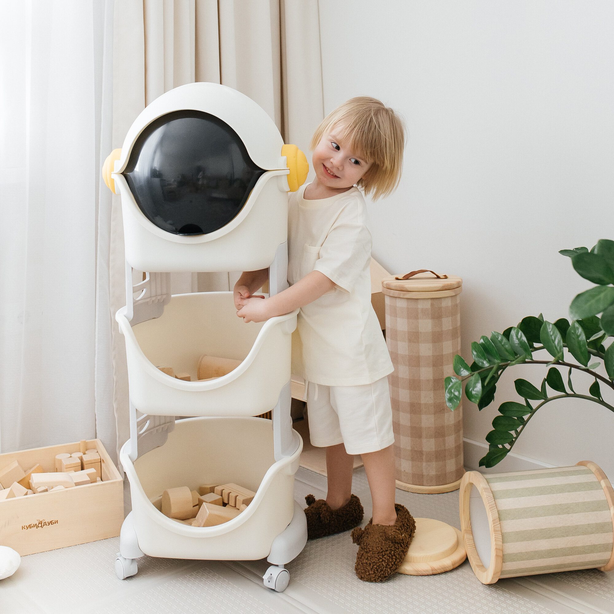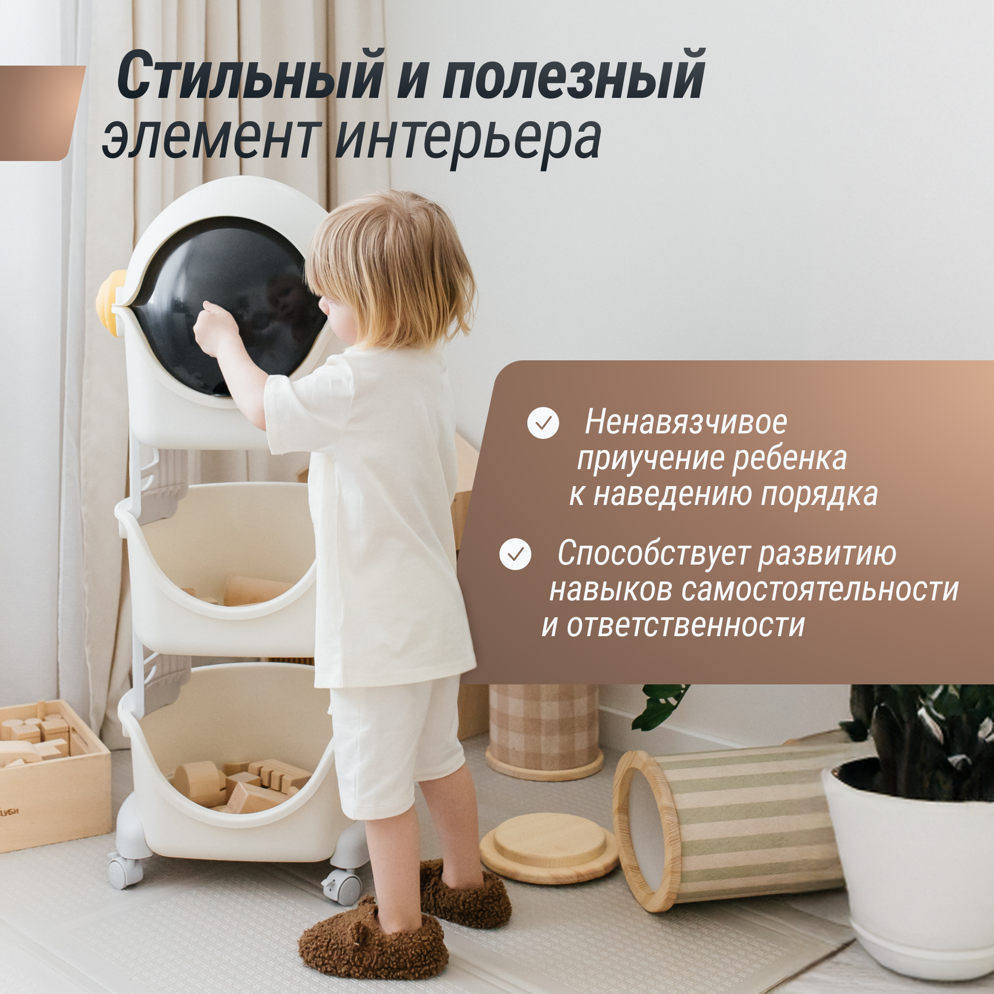 СохранитьСтеллаж для игрушек UNIX Kids Cosmo 3 напольный на колесиках, с ящиками, пластиковый открытый стеллаж этажерка в детскую комнату для хранения, серый интересное: