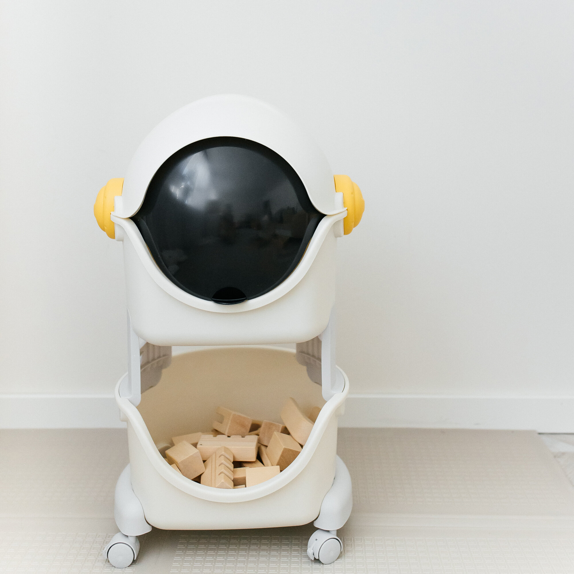 Стеллаж для игрушек UNIX Kids Moon 8 шкаф в детскую для хранения / с тележкой _ 3 полки + 5 ящиков