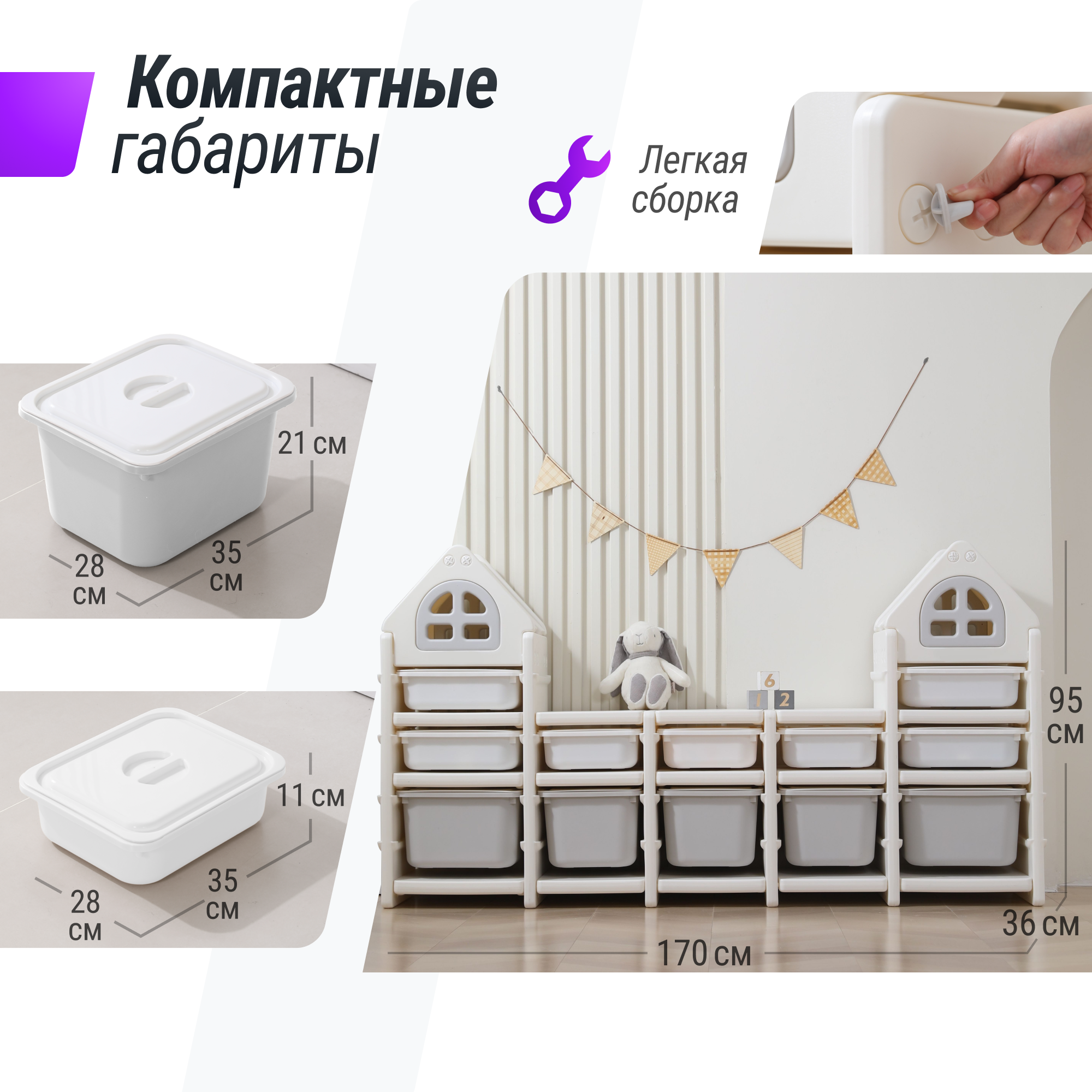 СохранитьСтеллаж для игрушек UNIX Kids Grey 12 ящиков, напольный, с корзинами, пластиковый стеллаж в детскую комнату для хранения интересное: