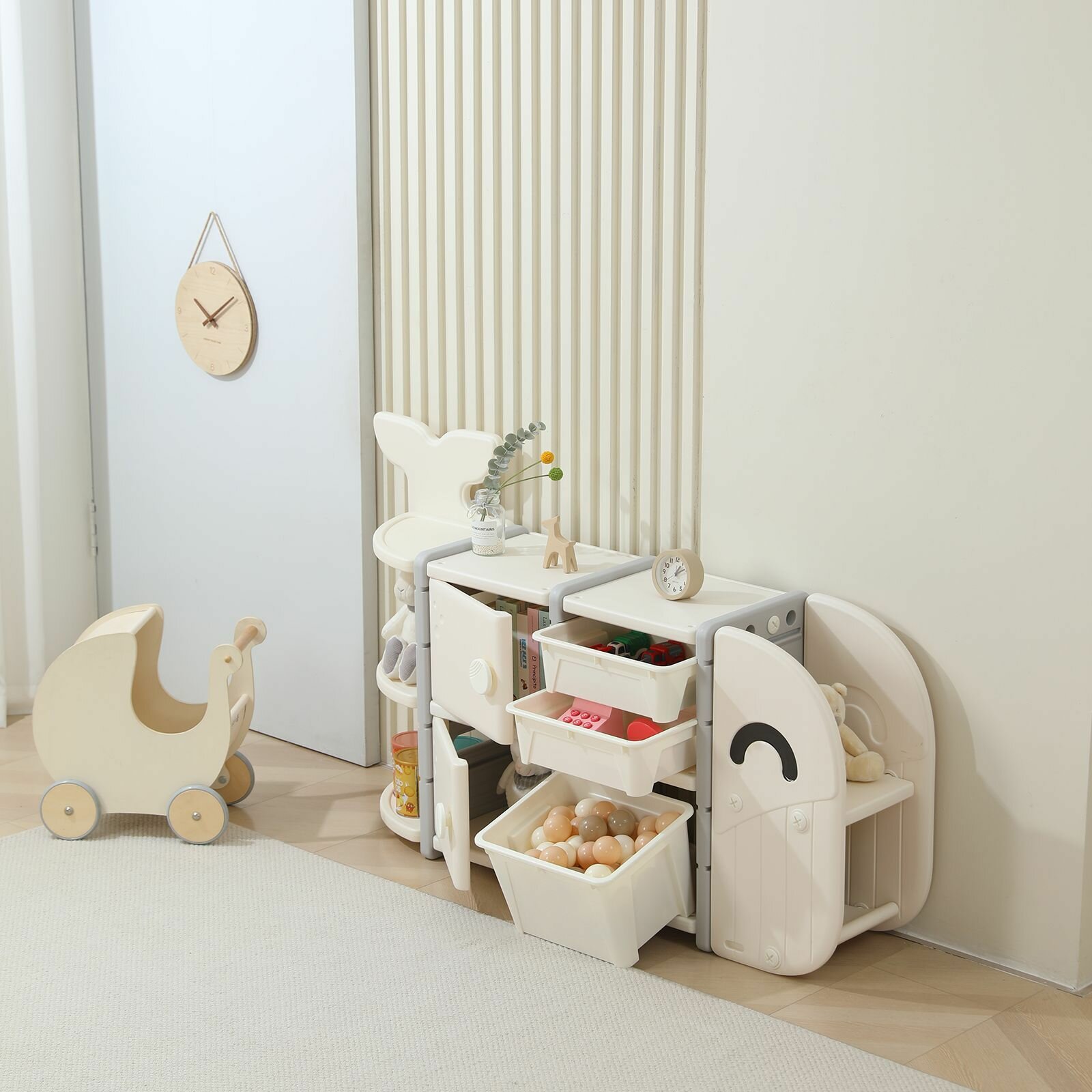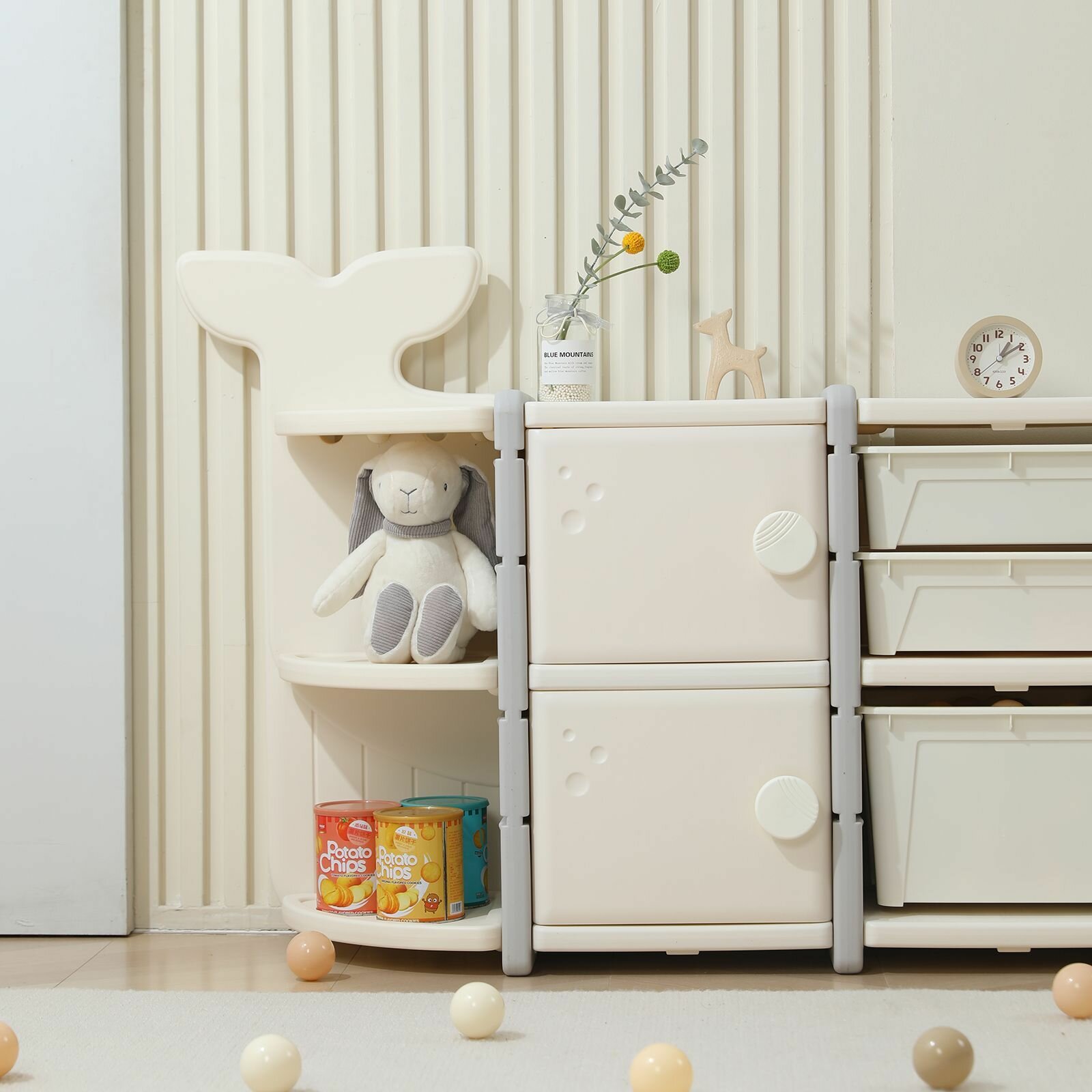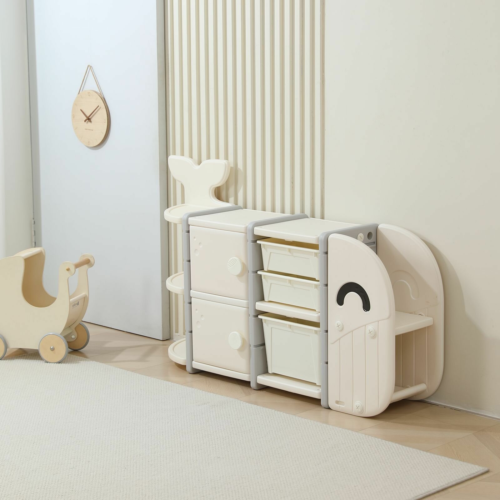 Купить Стеллаж для игрушек UNIX Kids Whale White 5 ящиков + полки, напольный в детскую комнату, пластиковый, белый