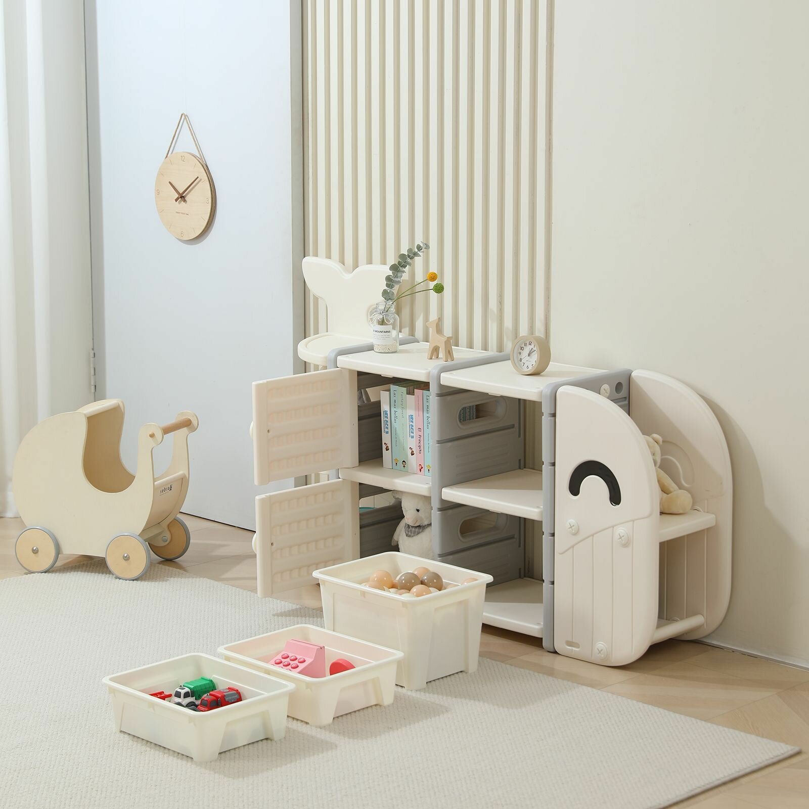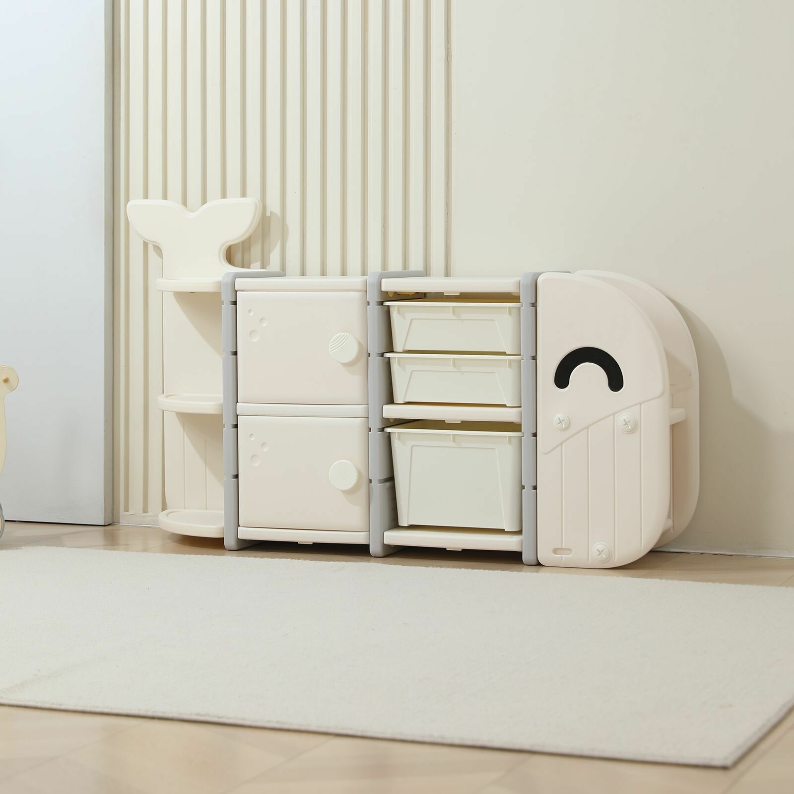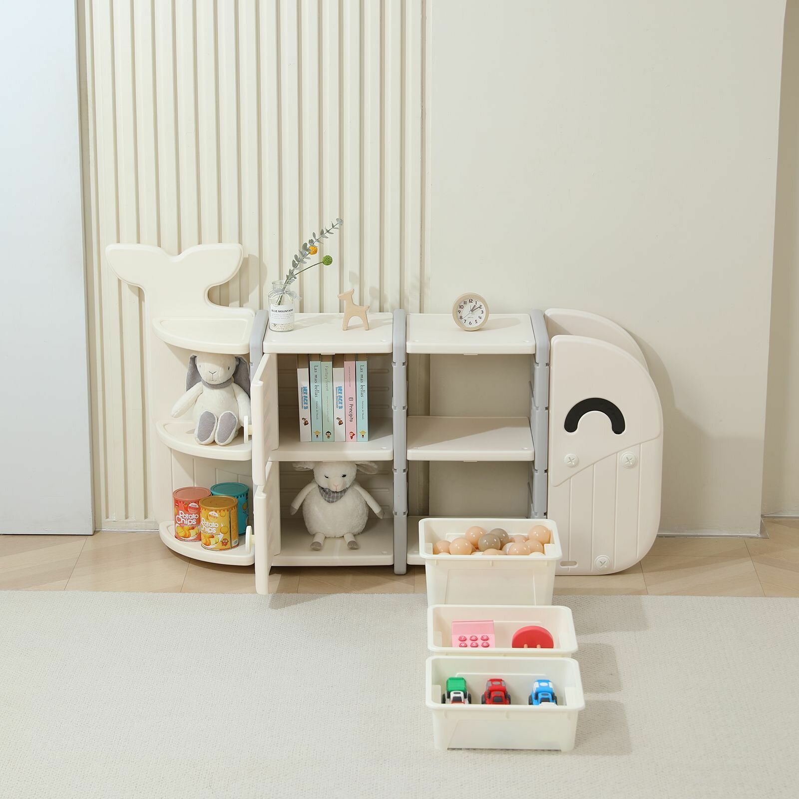 Стеллаж для игрушек UNIX Kids Whale White 3 ящика + полки, напольный в детскую комнату, пластиковый, белый