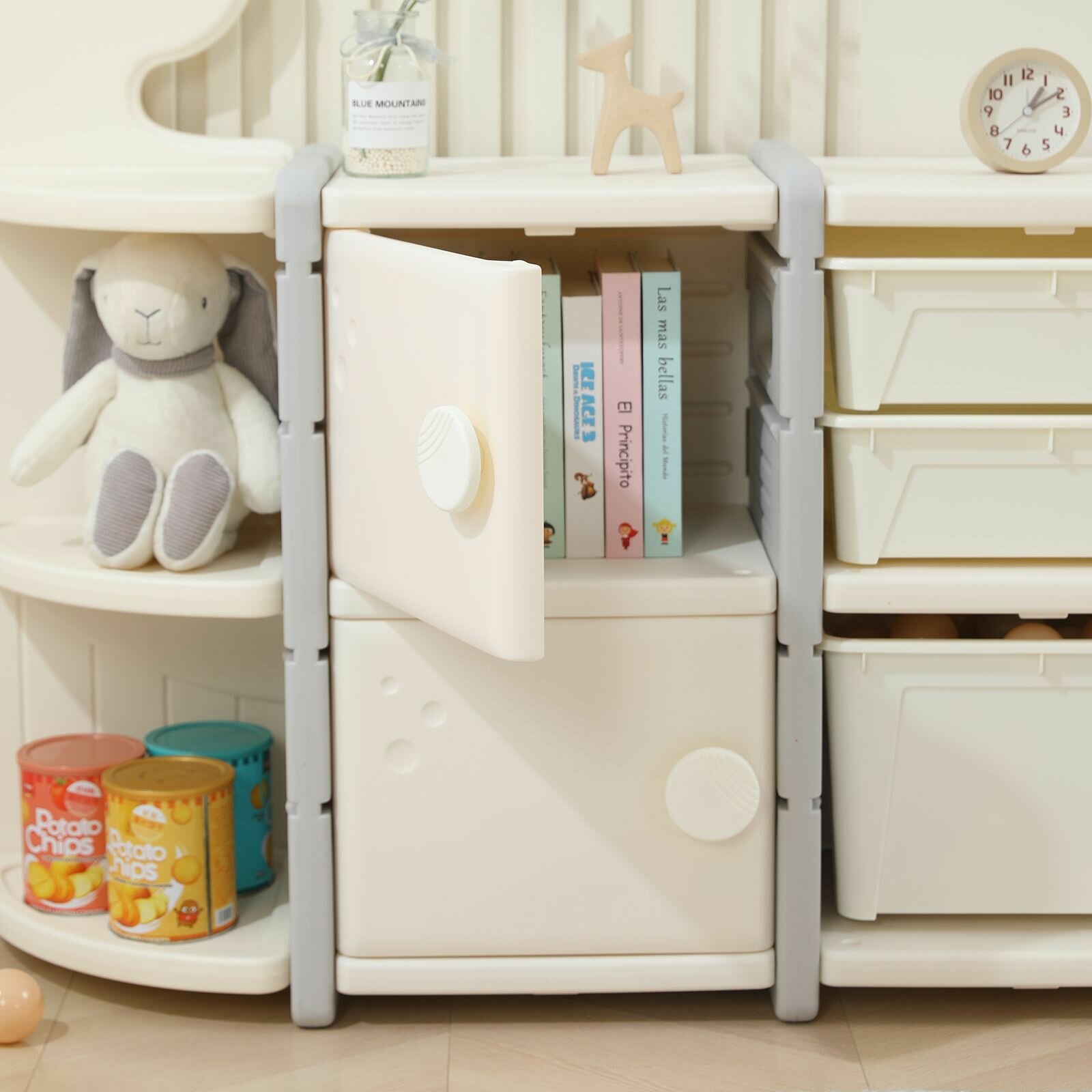 Стеллаж для игрушек UNIX Kids Moon 8 шкаф в детскую для хранения / с тележкой _ 3 полки + 5 ящиков