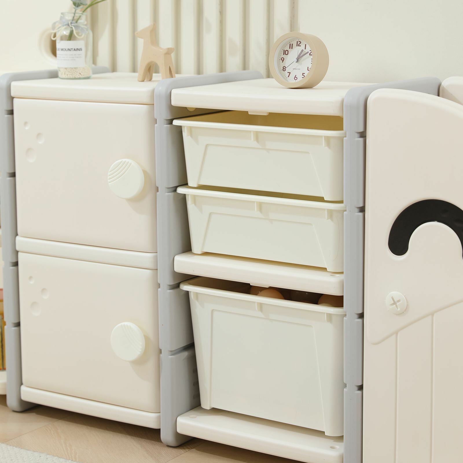 СохранитьСтеллаж для игрушек UNIX Kids Whale White 5 ящиков + полки, напольный в детскую комнату, пластиковый, белый интересное:
