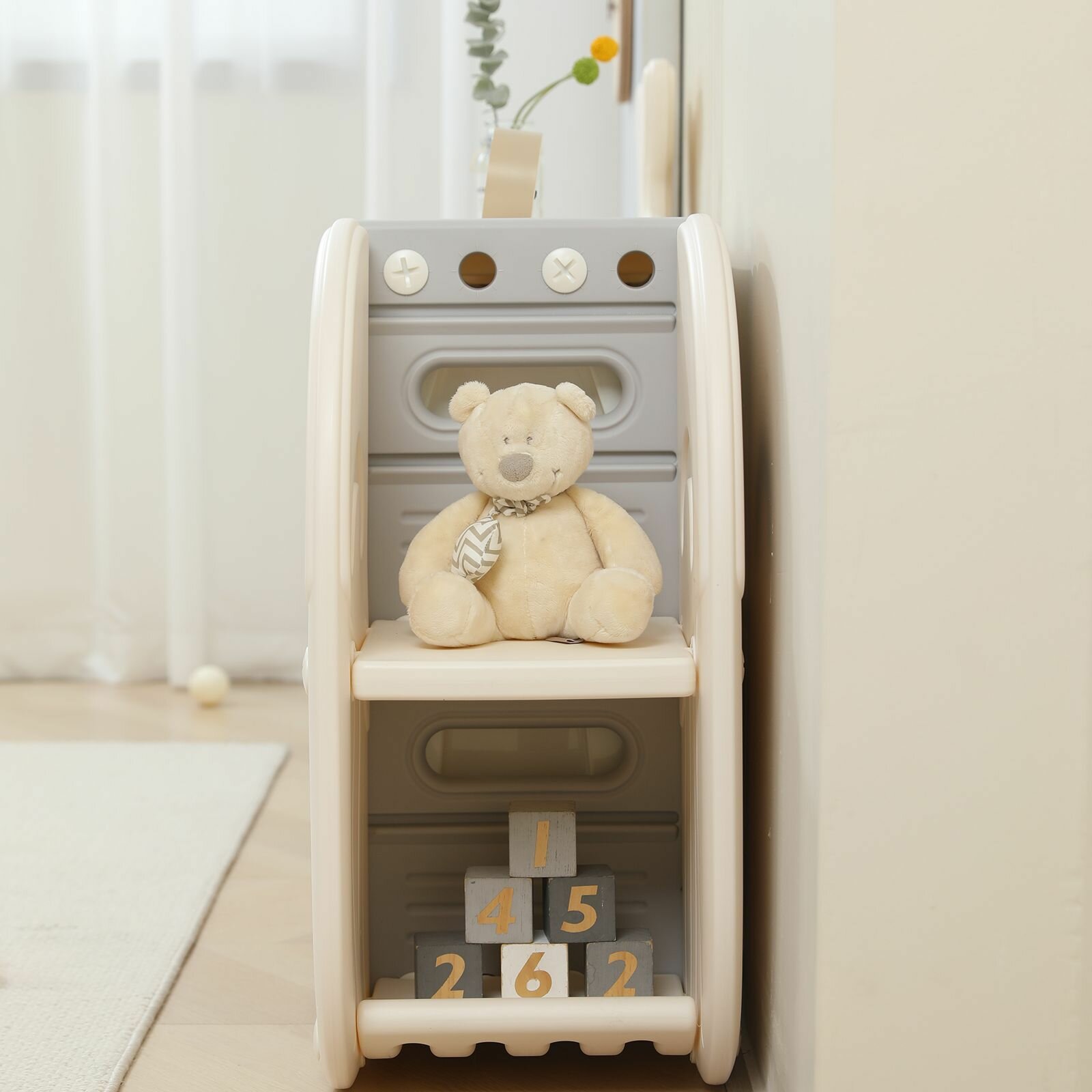 Стеллаж для игрушек UNIX Kids Cosmo 2 напольный на колесиках, с ящиками, пластиковый открытый стеллаж этажерка в детскую комнату для хранения, серый
