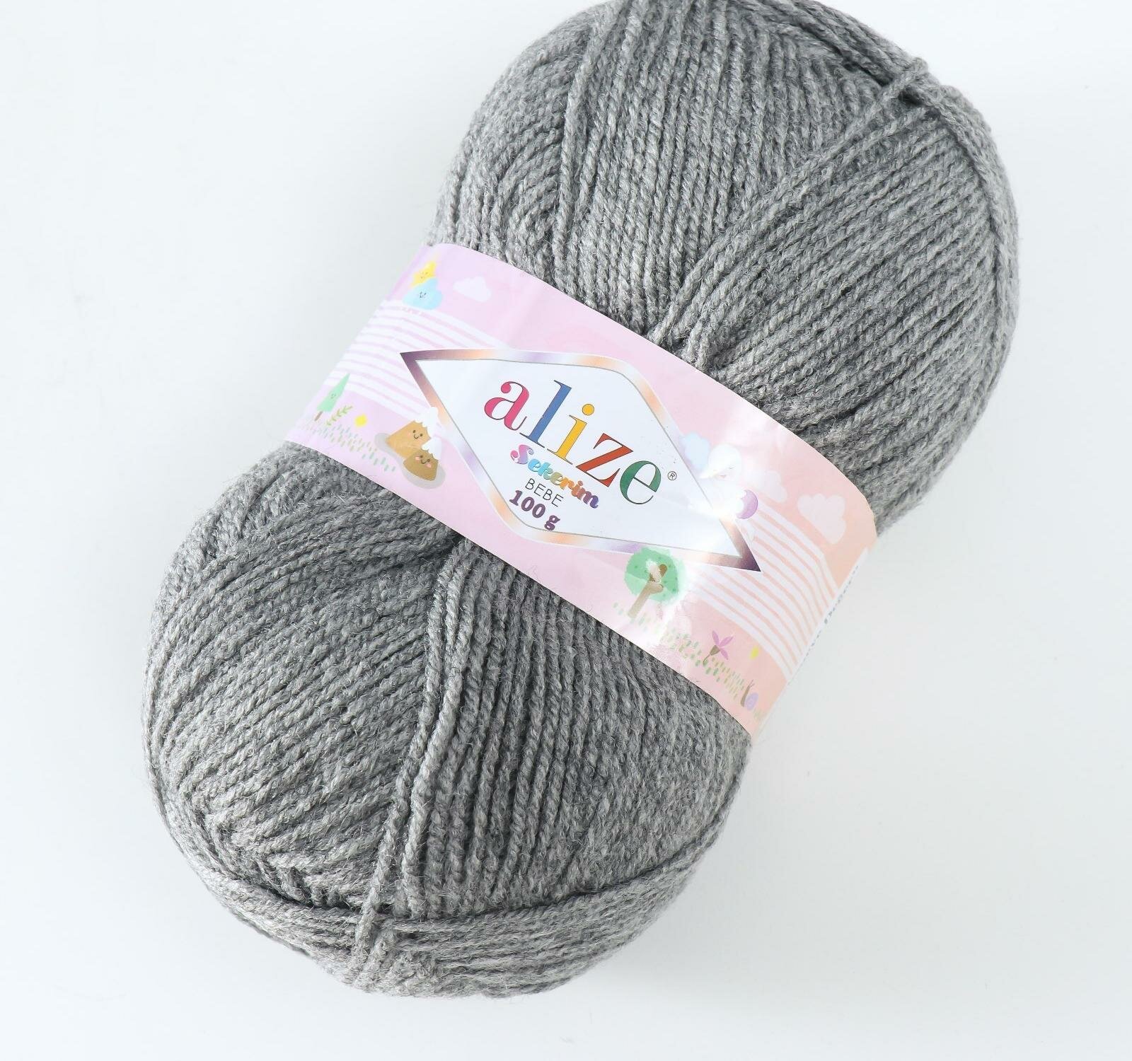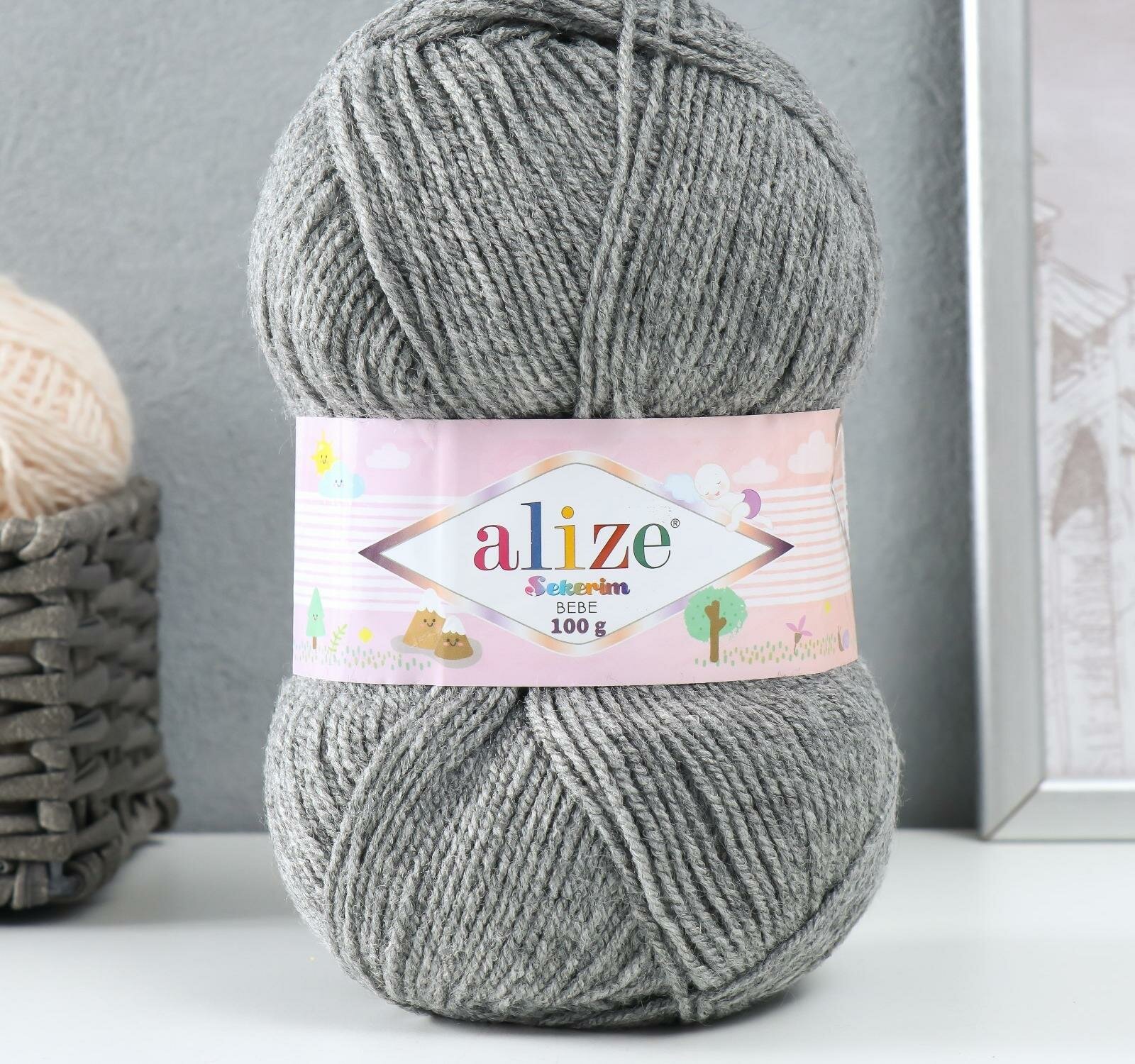 Пряжа для вязания Alize Sekerim Bebe (Шекерим Беби) - 1 моток 21 серый меланж, детская гипоаллергенная, 100% акрил, 320м/100г