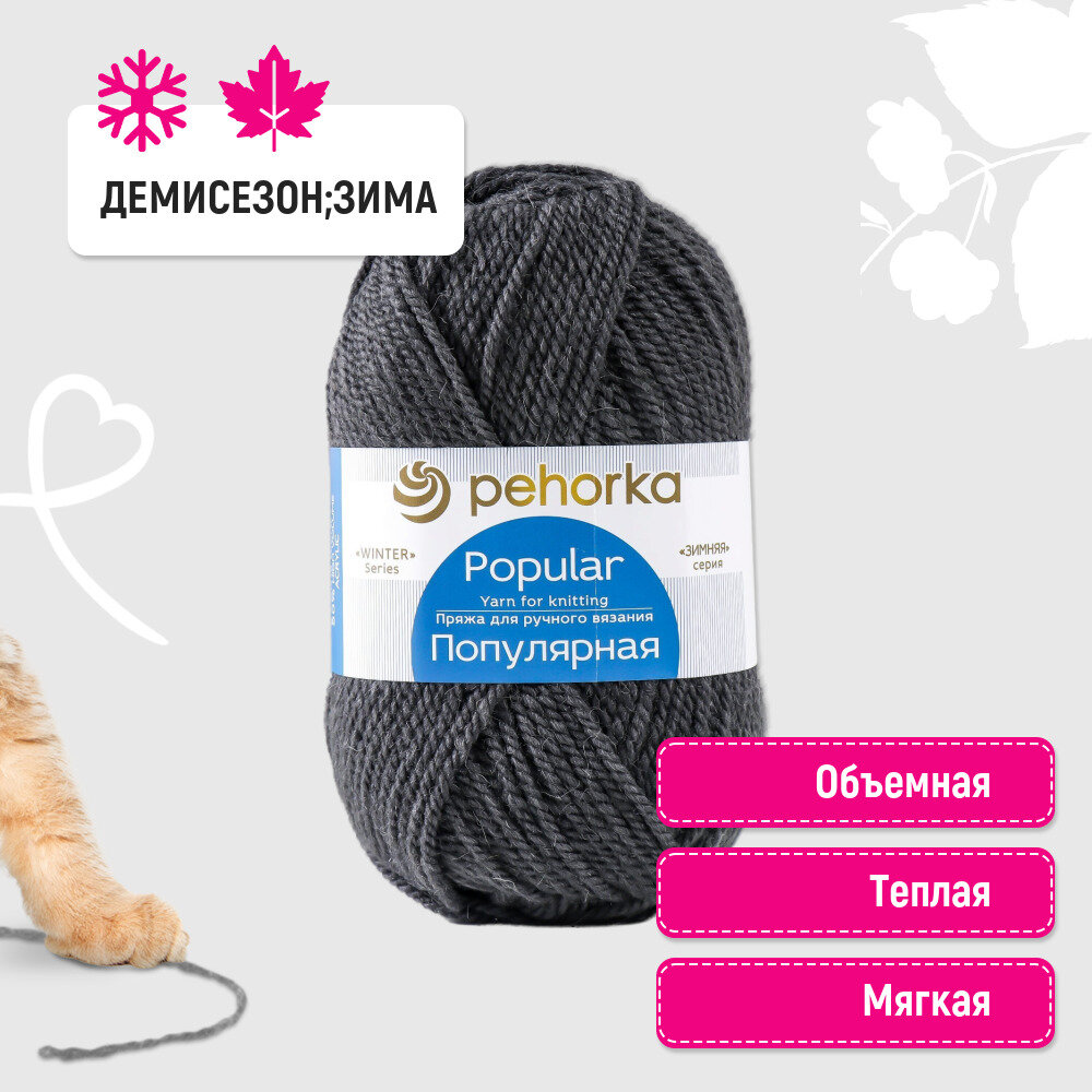 Пряжа Пехорка Популярная черный (2), 50%шерсть/50%акрил, 133м, 100г, 1шт