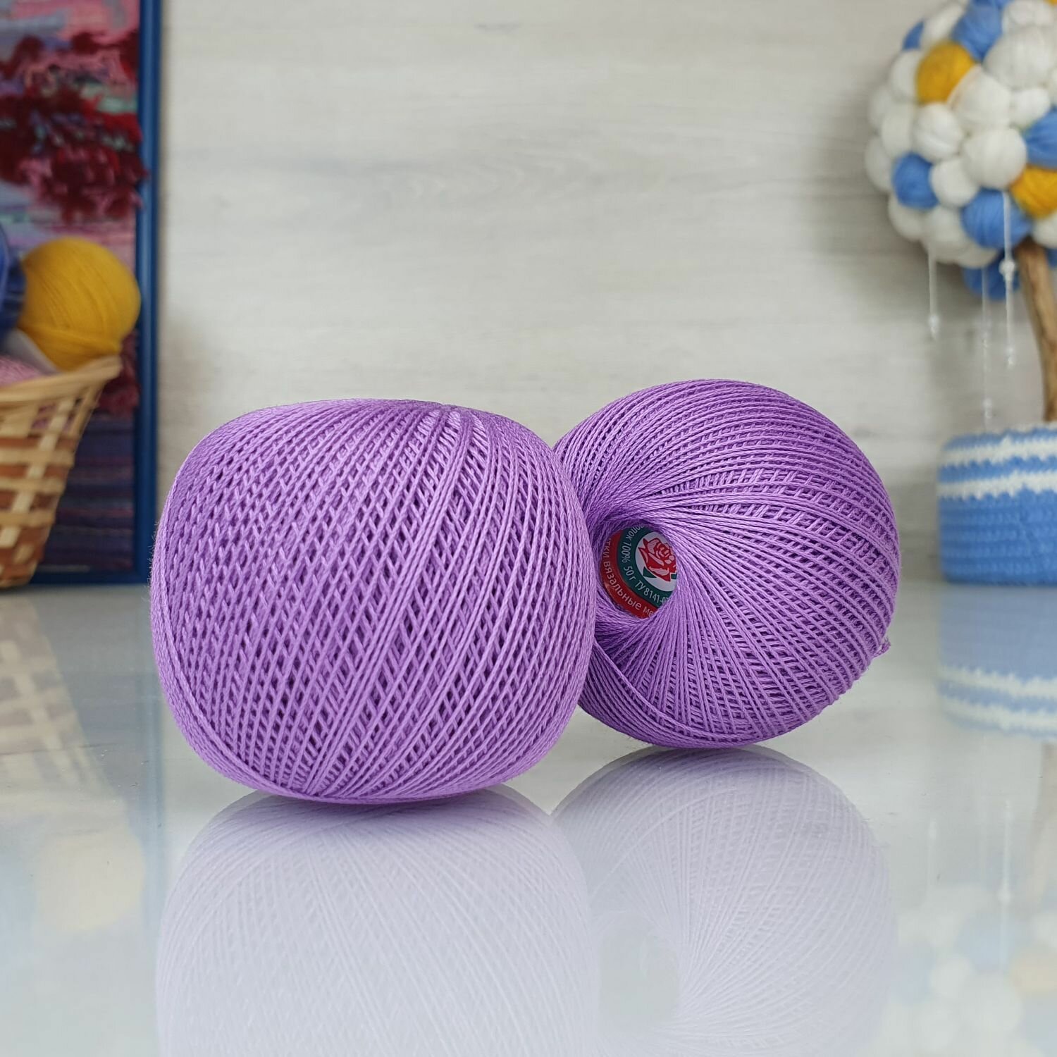 Пряжа ПНК Кирова Роза сирень (2306), 100%мерсеризованный хлопок, 330м, 50г, 2шт