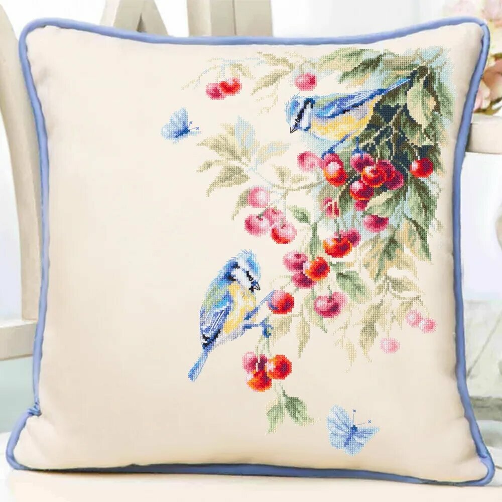 Набор для вышивания крестом схема цветная символьная Чудесная игла, картина, Синицы и вишня, 25*35см