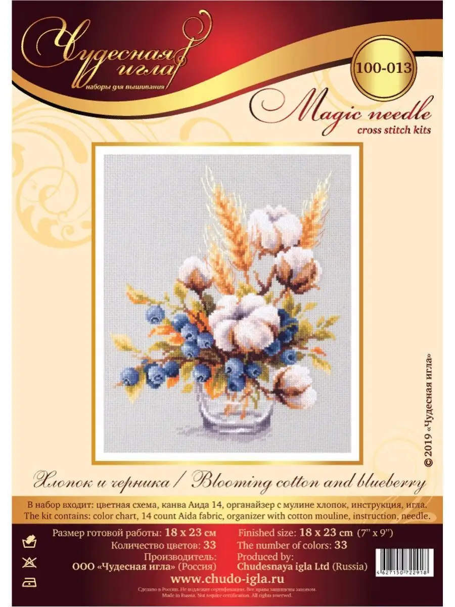 Набор для вышивания Чудесная игла 100-013 "Хлопок и черника" 18*23см интересное: