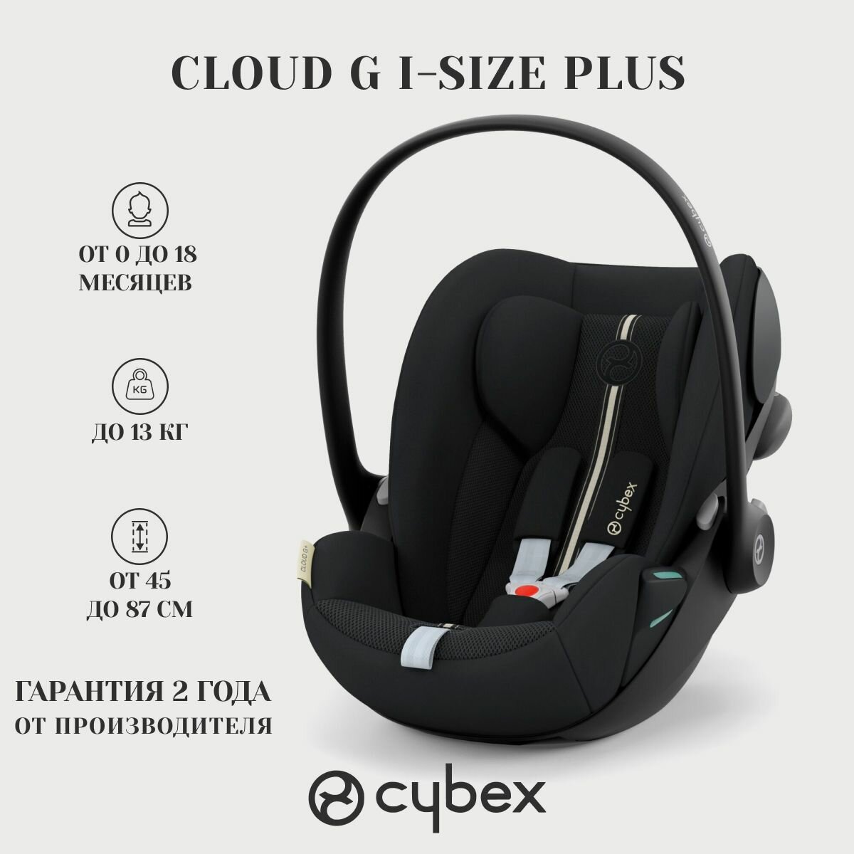 Купить Детское автокресло Cybex Cloud G i-Size, цвет Moon Black PLUS черный, группа 0+ с рождения до 2-х лет (до 13 кг, 40-87 см), автолюлька переноска стандарт ECE R129/03, протестировано ADAC