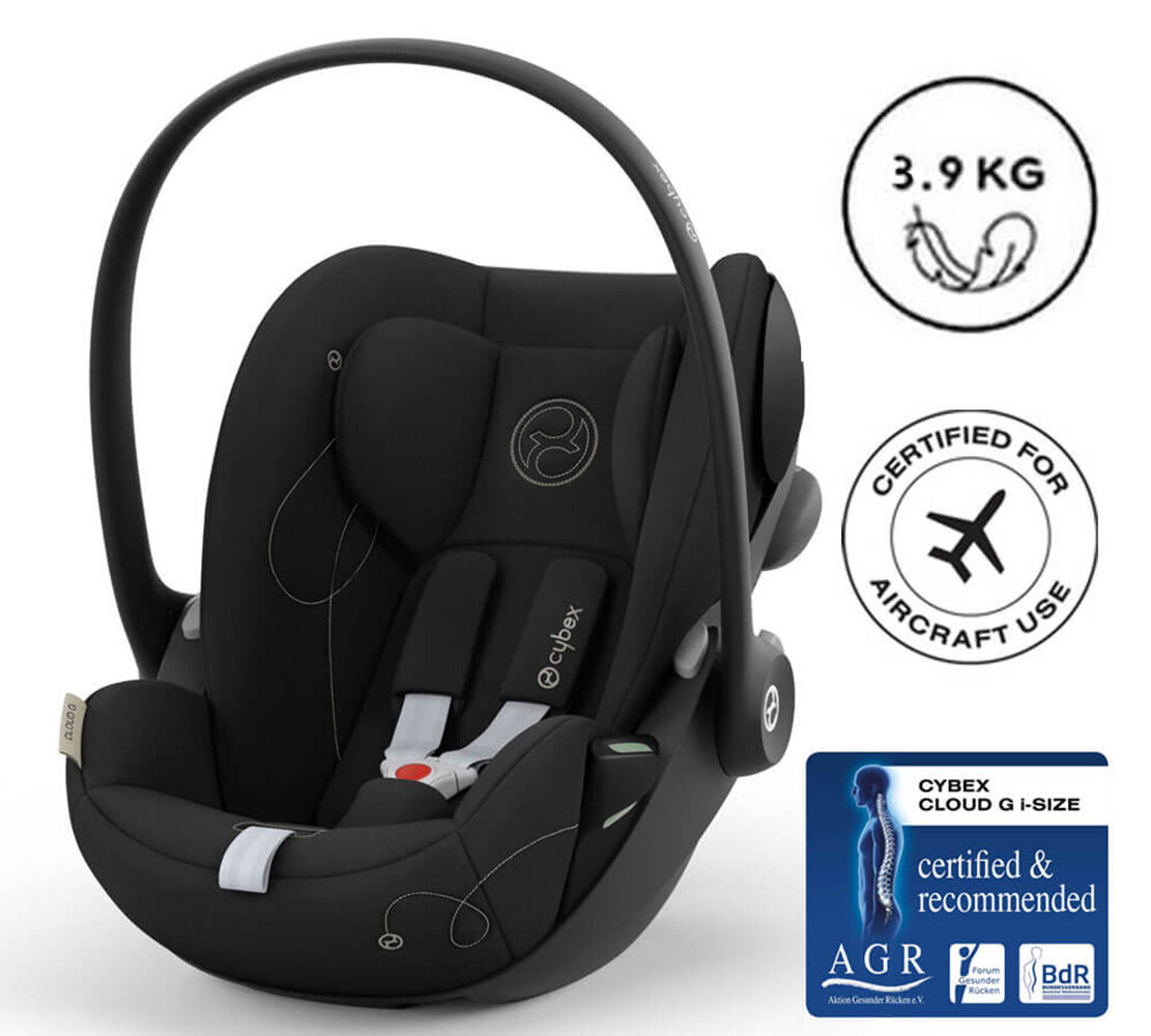 Детское автокресло Cybex Cloud G i-Size, цвет Moon Black PLUS черный, группа 0+ с рождения до 2-х лет (до 13 кг, 40-87 см), автолюлька переноска стандарт ECE R129/03, протестировано ADAC
