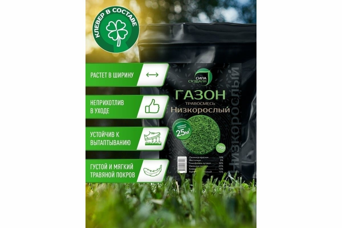 Семена газонной травы "Низкорослый" 1 кг Сила Суздаля, семена газон интересное: