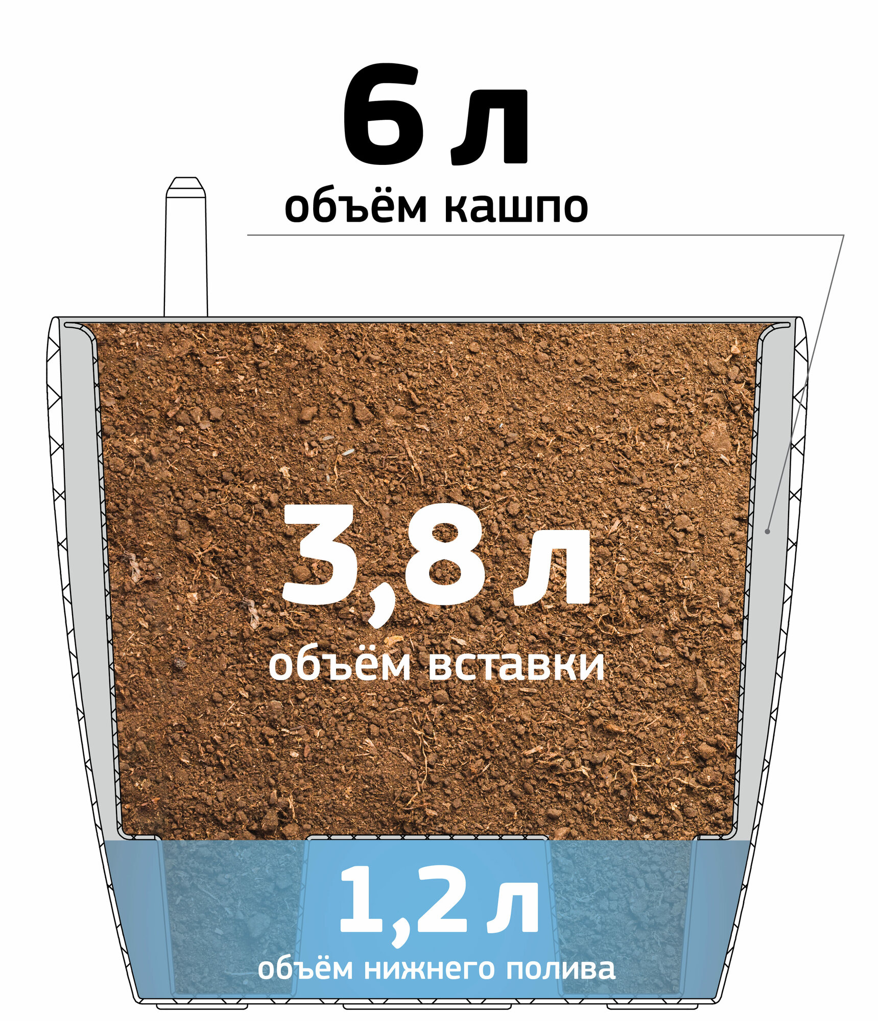 Кашпо для цветов с автополивом анфа, объем 3,2 литра, диаметр 18 см, Белый IDEA