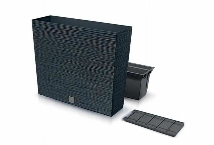 Кашпо для цветов напольное Prosperplast Furu Case низкий, антрацит, 18 л., 58Х18Х19,5 см.