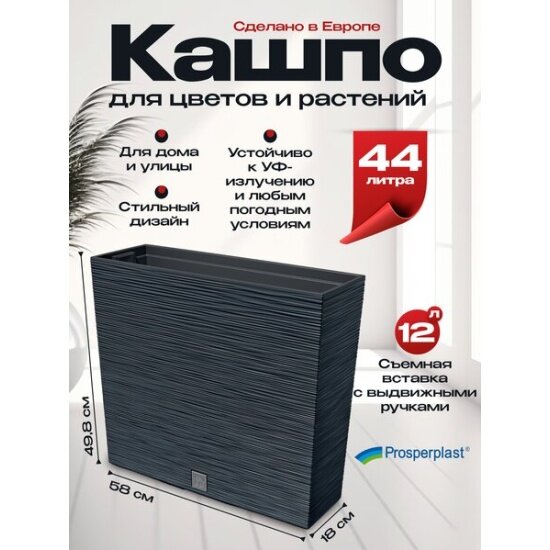Кашпо Prosperplast для цветов напольное FURU CASE TOWER 44 л, антрацит