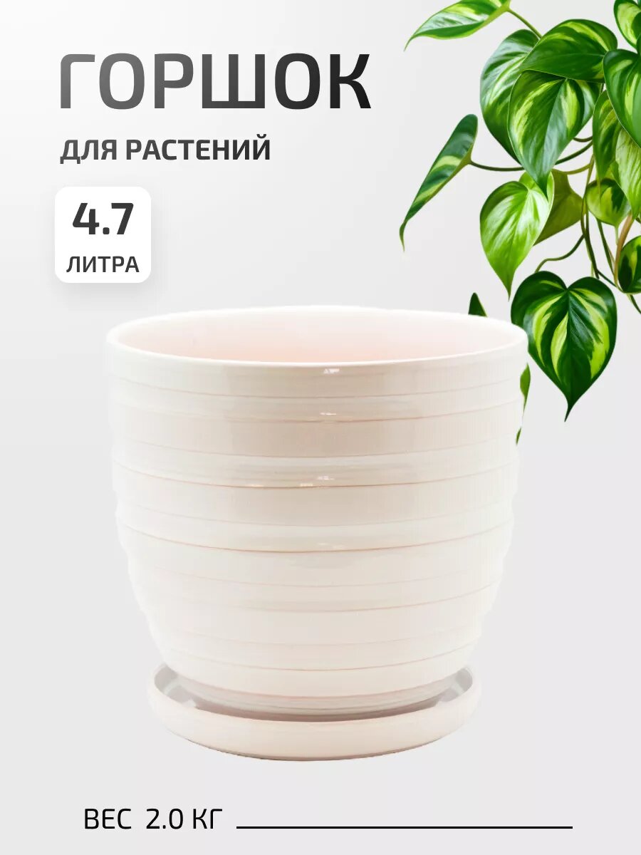Купить Керамический горшок цветочный ВеЩицы с подставкой блюдцем / Горшок для цветов с поддоном / Горшок для растений / 21х21х20 см, объем 4,7 л, цвет белый